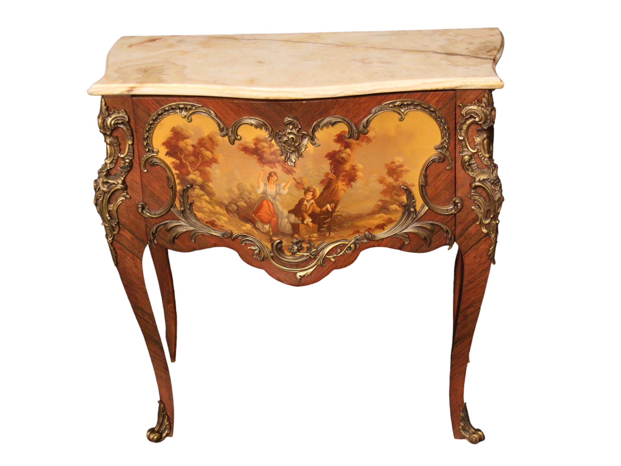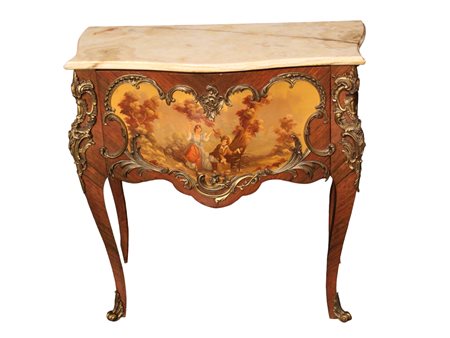 MOBILE CON RIBALTA stile Napoleone III in bois de rose e ribalta dipinta h cm 85 x 84 x 42