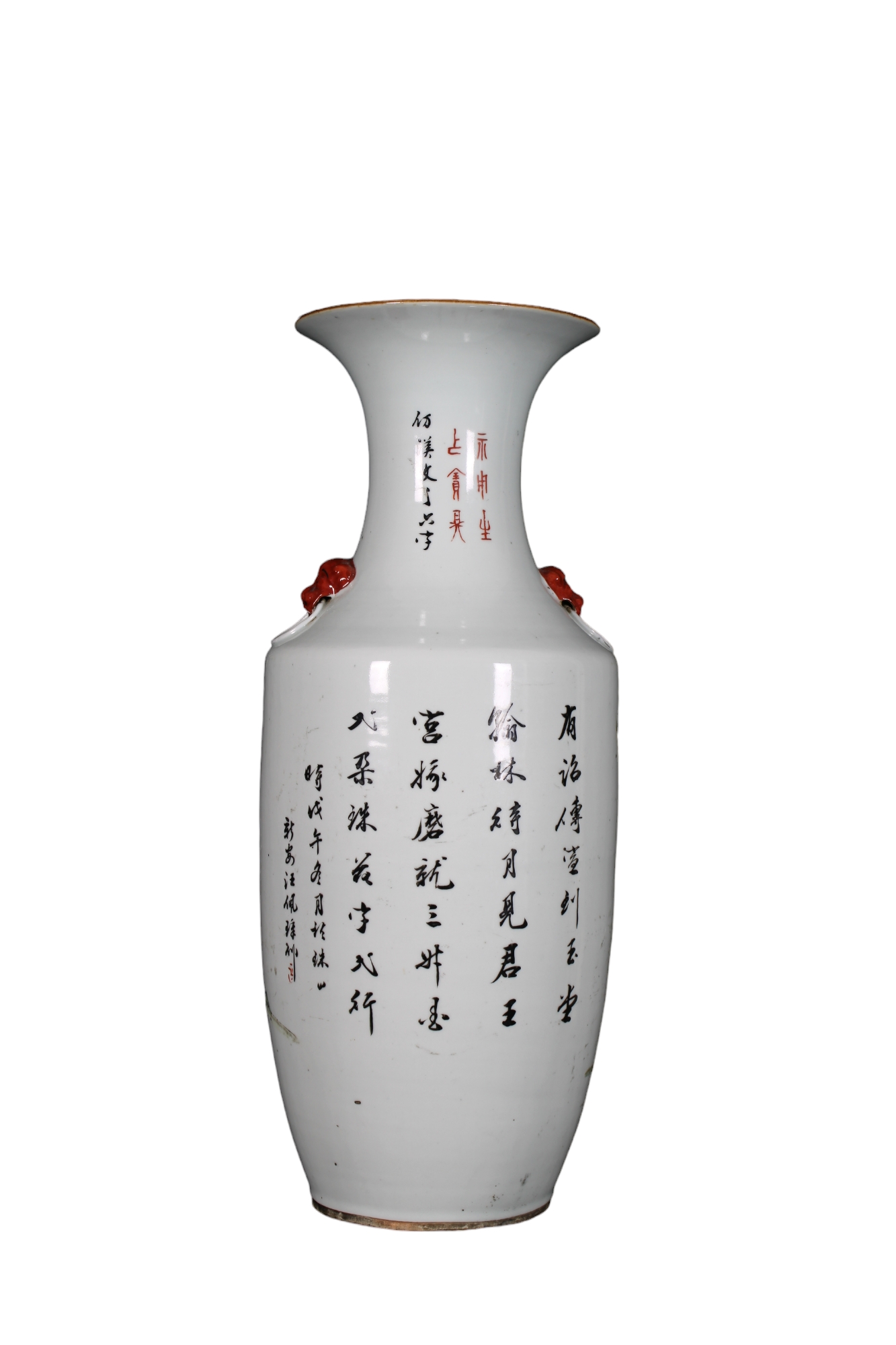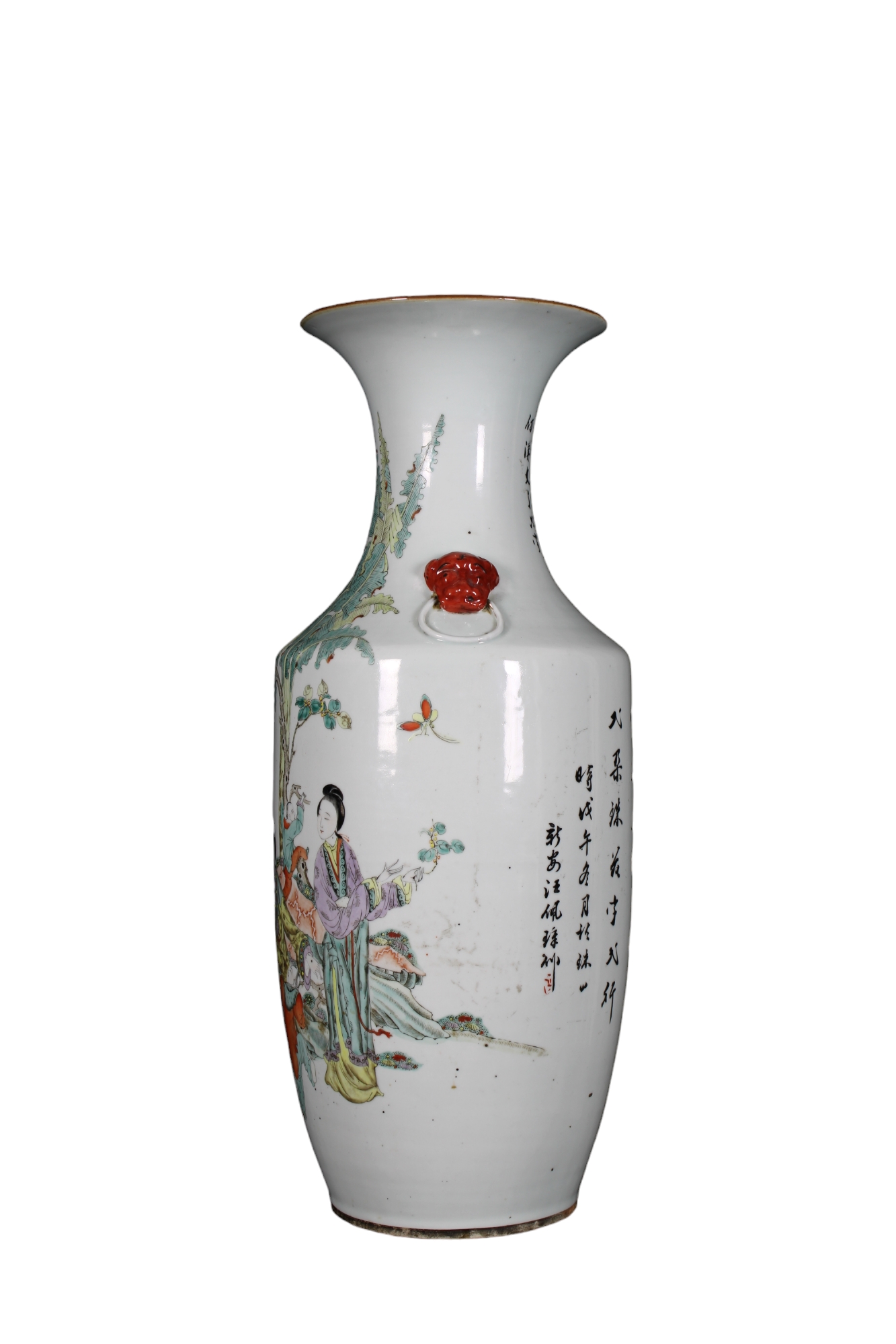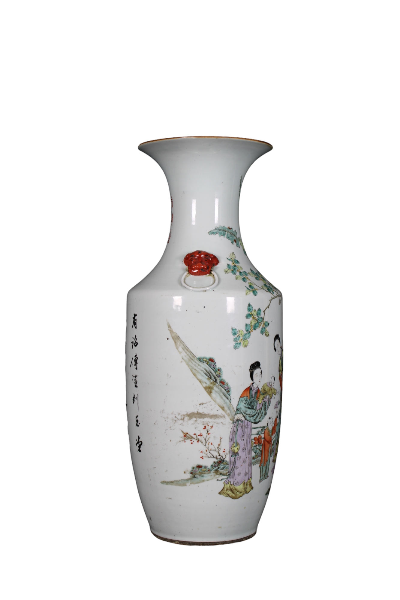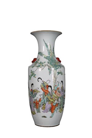 VASO in porcellana dipinta raffigurante personaggi, usure del tempo manifattura Cina XIX/XX secolo h cm 58,5 x 23