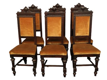 GRUPPO DI 6 SEDIE in noce Sicilia XIX secolo h cm 120 x 42 x 42