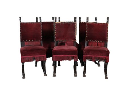 GRUPPO DI 7 SEDIE in stile rinascimento Sicilia primi 900 h cm 108 x 45 x 43