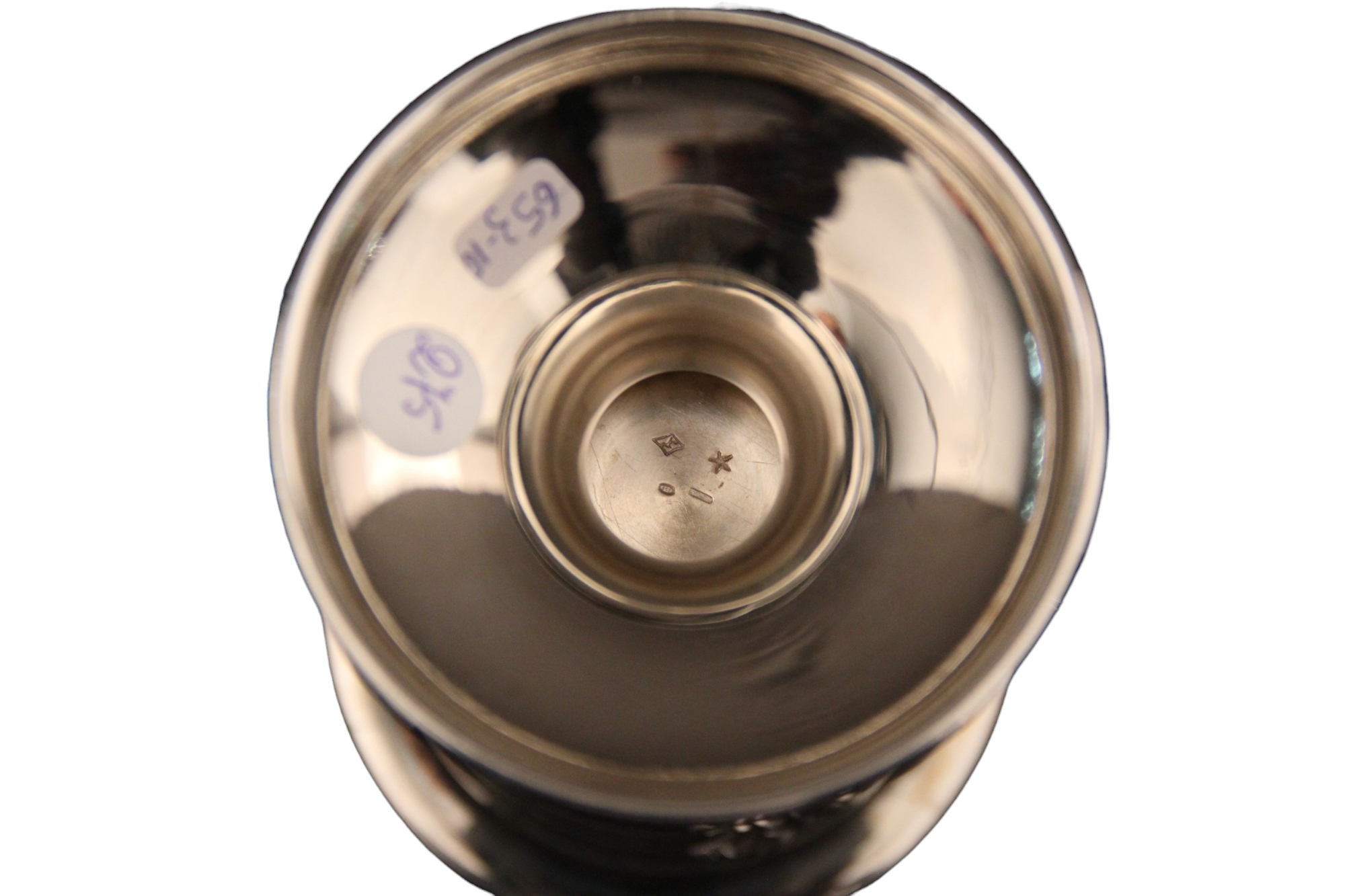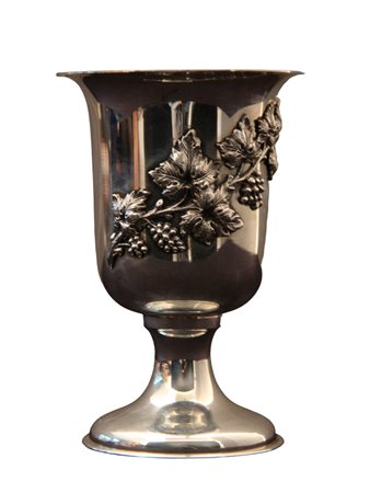 CALICE in argento, decorato da tralci di vite con uva, interno in vermeil, grammi 238 Italia metà 900 h cm 16 x Ø 11