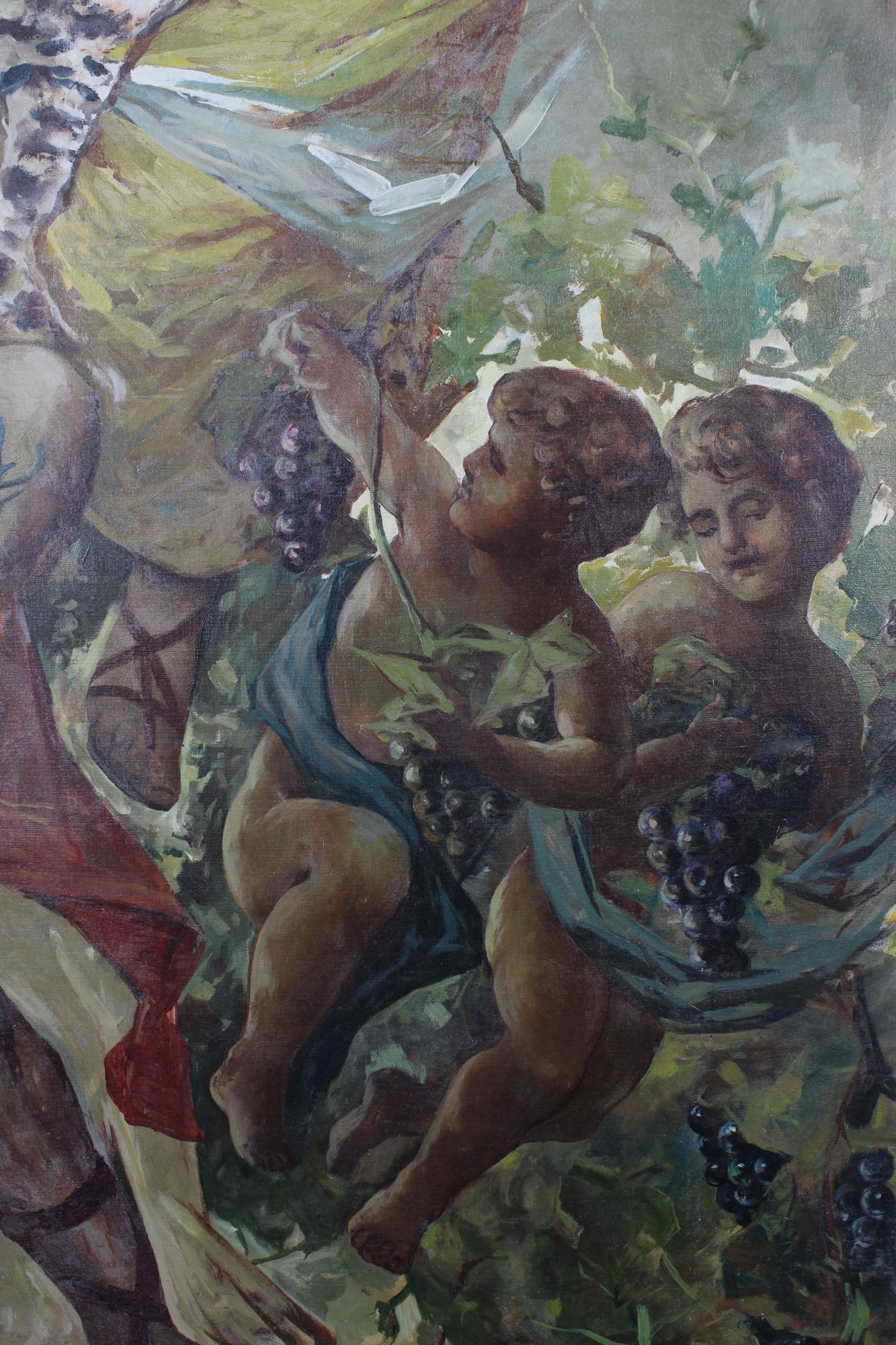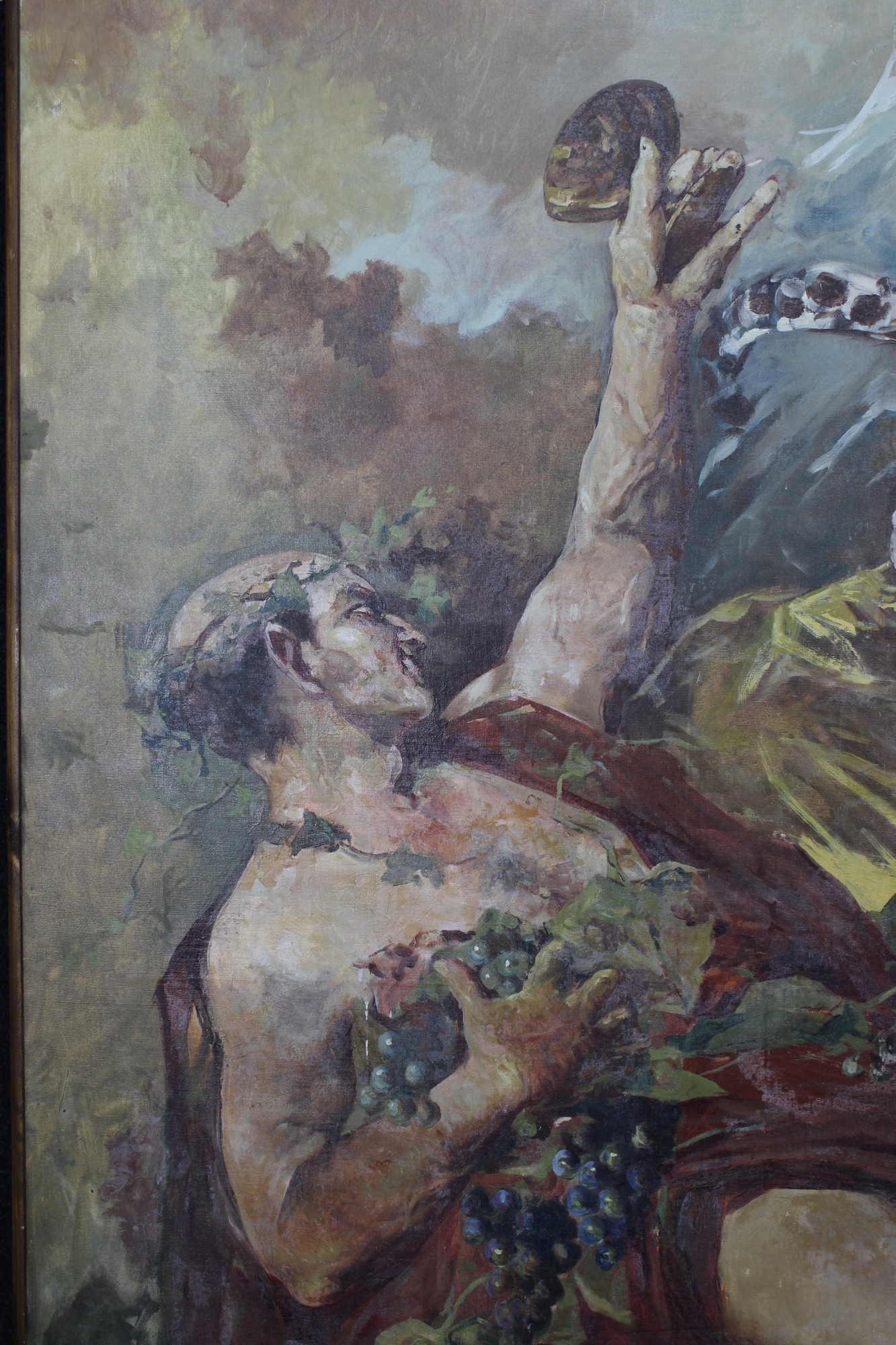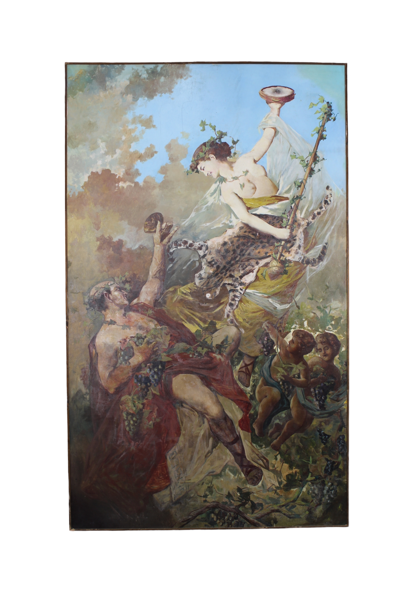 IMPORTANTE GRANDE DIPINTO OLIO SU TELA raffigurante scena mitologica a firma Nervi Italia XIX/XX secolo h cm 267 X 160