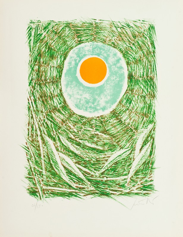 Peverelli Cesare e Masi Roberto LOTTO UNICO DI DUE OPERE - "Cesare Peverelli", Senza titolo, Litografia su carta, cm. 66x50, es. 24/150, firma in basso a destra, tiratura in basso a sinistra; - "Roberto Masi", Paesaggio, Litografia su carta, cm. 50x39, es. P.A., 10/20, firma in basso a destra, tiratura in basso a sinistra, sul verso: etichetta dell'Artista con descrizione.