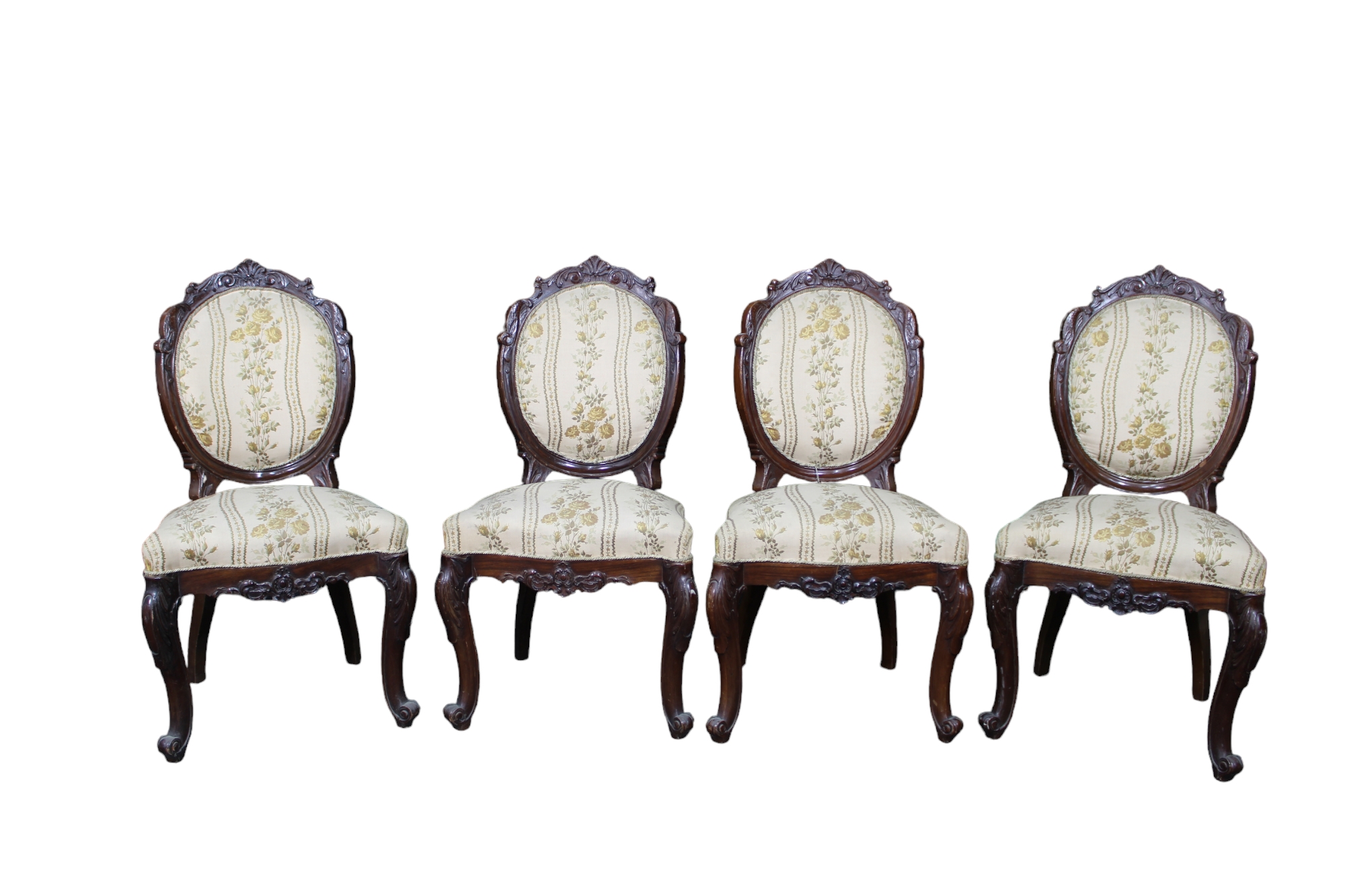 4 SEDIE in legno di noce riccamente scolpito Sicilia primi 800