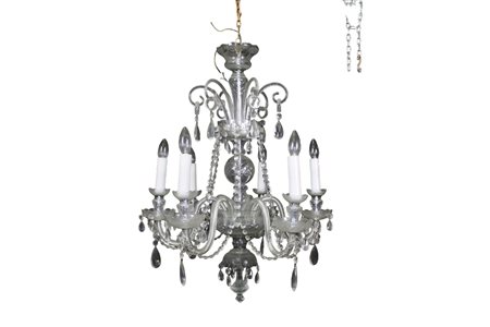 LAMPADARIO in vetro a 5 luci maestranze italiane primi 900 h cm 85 x 67