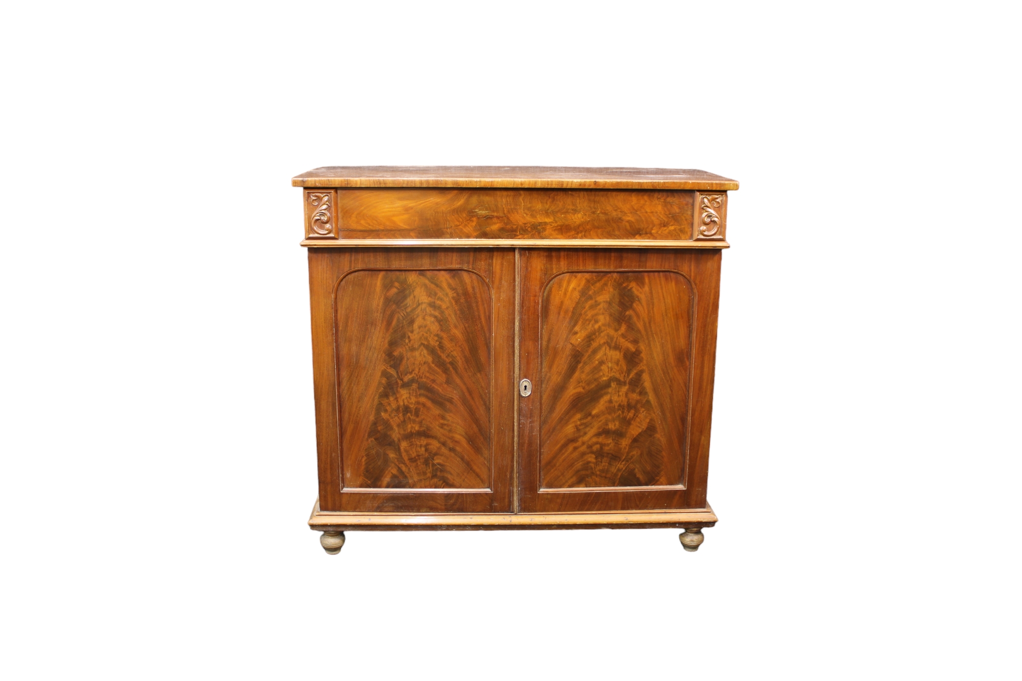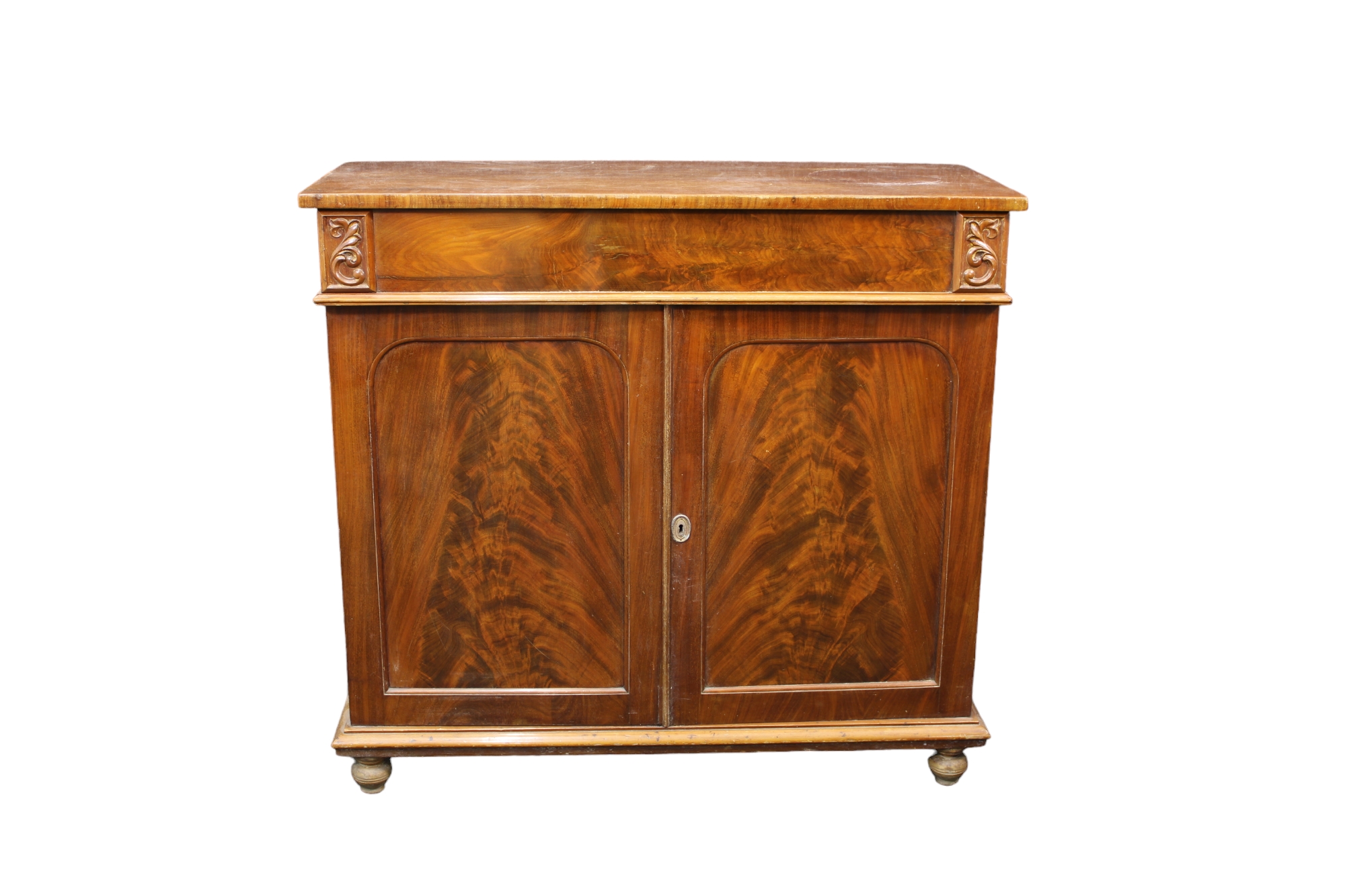 CREDENZA in piuma di mogano a due sportelli ed un cassetto Francia XIX secolo h cm 102 x 110 x 44