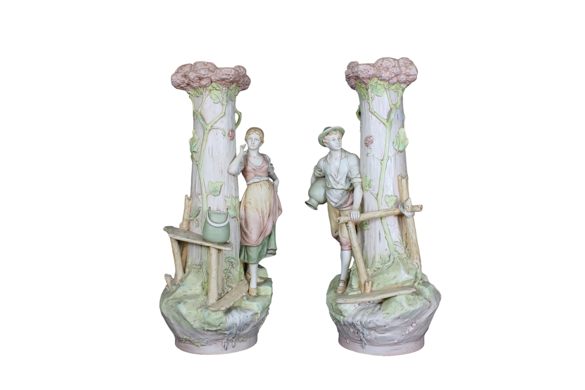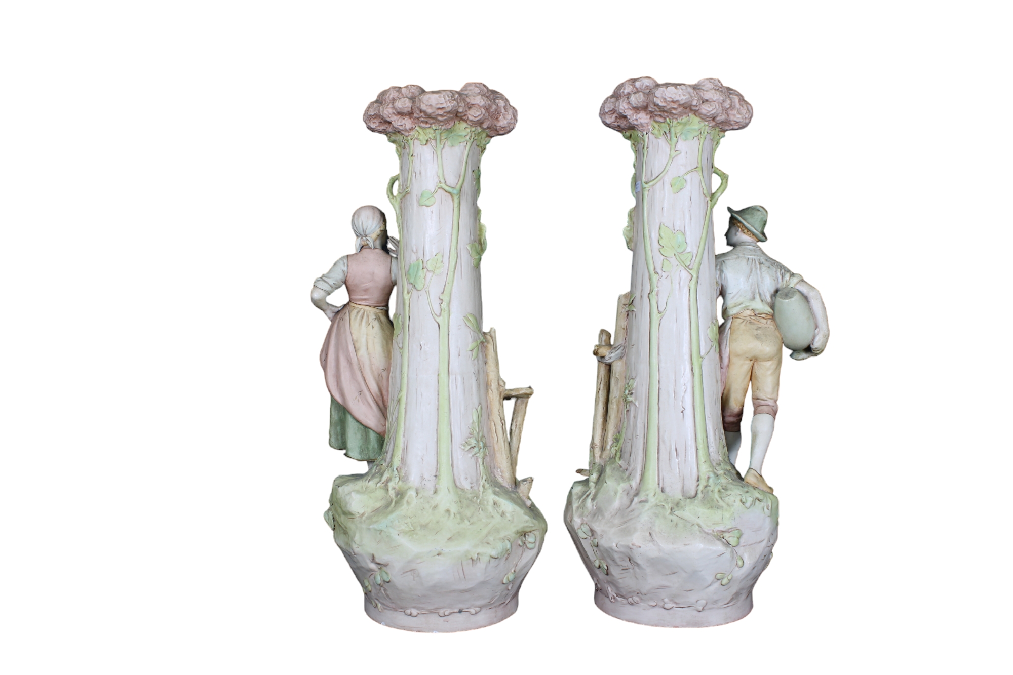 COPPIA DI GRANDI VASI in porcellana dipinta raffigurante personaggi manifattura Dux Primi 900 h cm 75 x 38