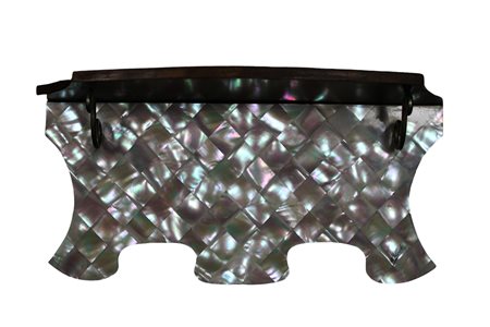 MENSOLA in legno intarsiata a motivi geometrici in madreperla firmata Ahlbecks h cm 16 x 34 x 9