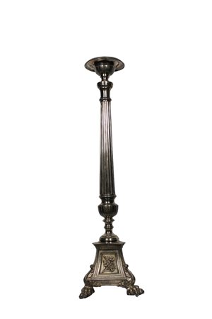 TORCERE in metallo finemente sbalzato e cesellato e argentato maestranze siciliane XIX secolo h cm 82 x 22