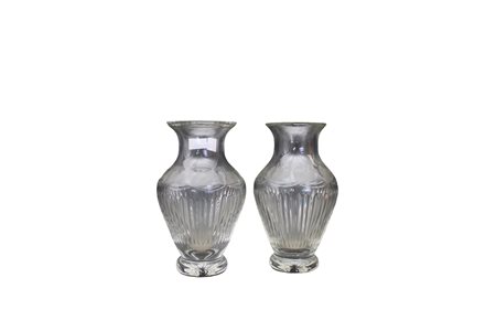 COPPIA VASI in vetro intagliato Italia XX secolo h cm 23 x 13