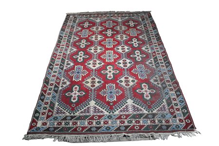 GRANDE TAPPETO a fondo Bordeaux con figure geometriche manifattura Turca XX secolo h cm 180 x 280