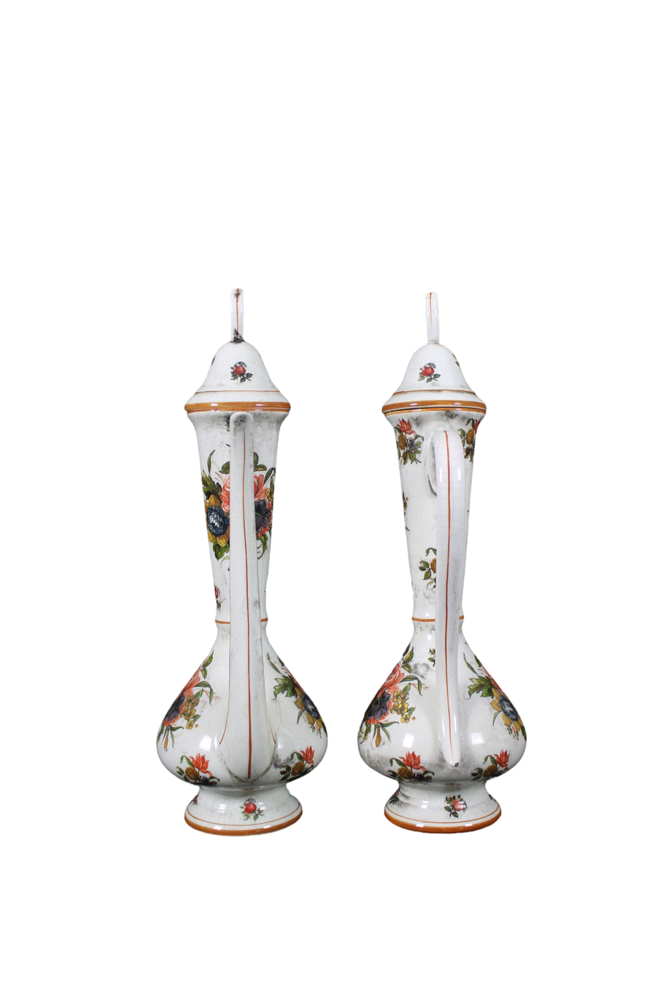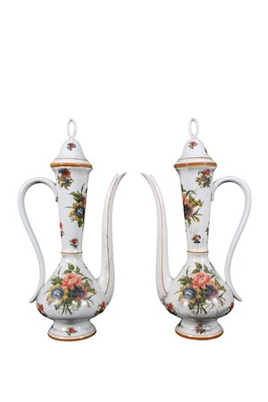 2 GRANDI BROCCHE in porcellana con coperchio dipinta a motivi floreali Manifattura Sicas Italia XX secolo h cm 51,5 x 26