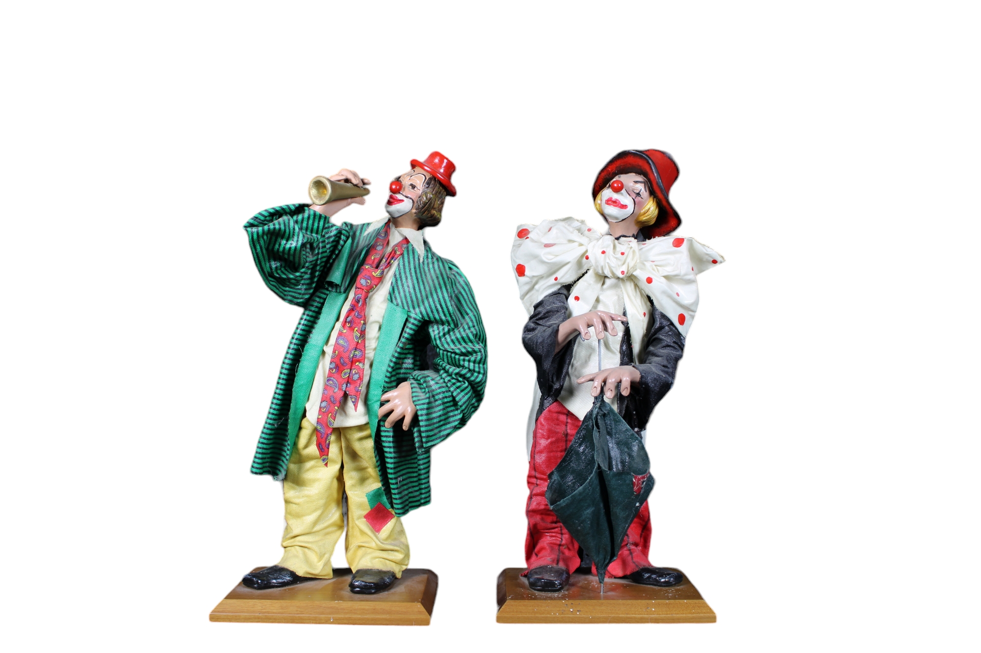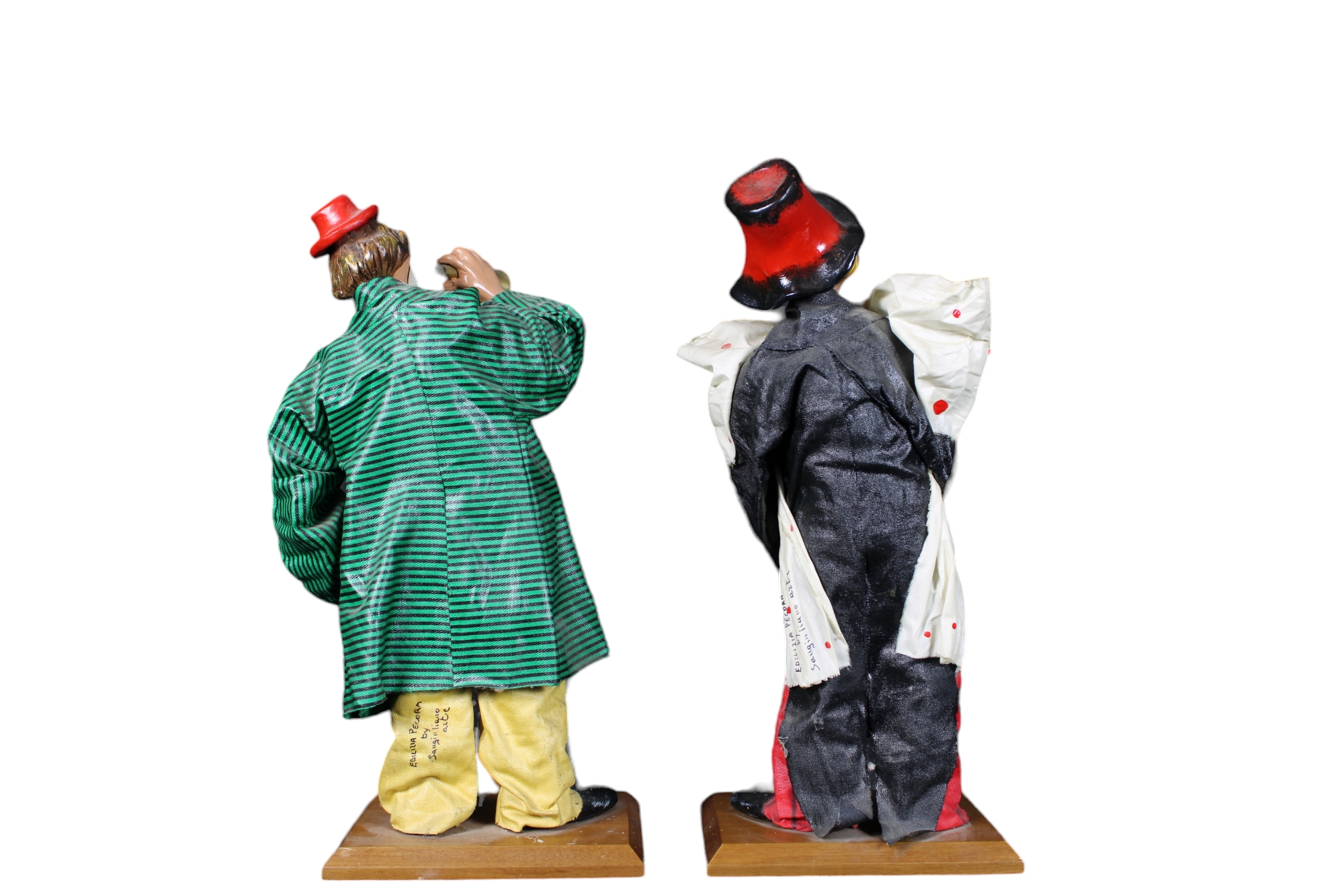 2 SCULTURE in cartapesta raffigurante Clown manifattura Edilizia pecora By Sangiuliano Arte Italia XX secolo h cm 35 x 12 x 15