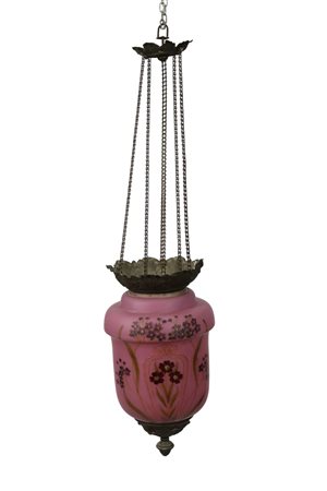 LAMPADA IN SOSPENSIONE in opaline dipinta a motivi floreali e metallo stile liberty Sicilia h cm 75 x 20