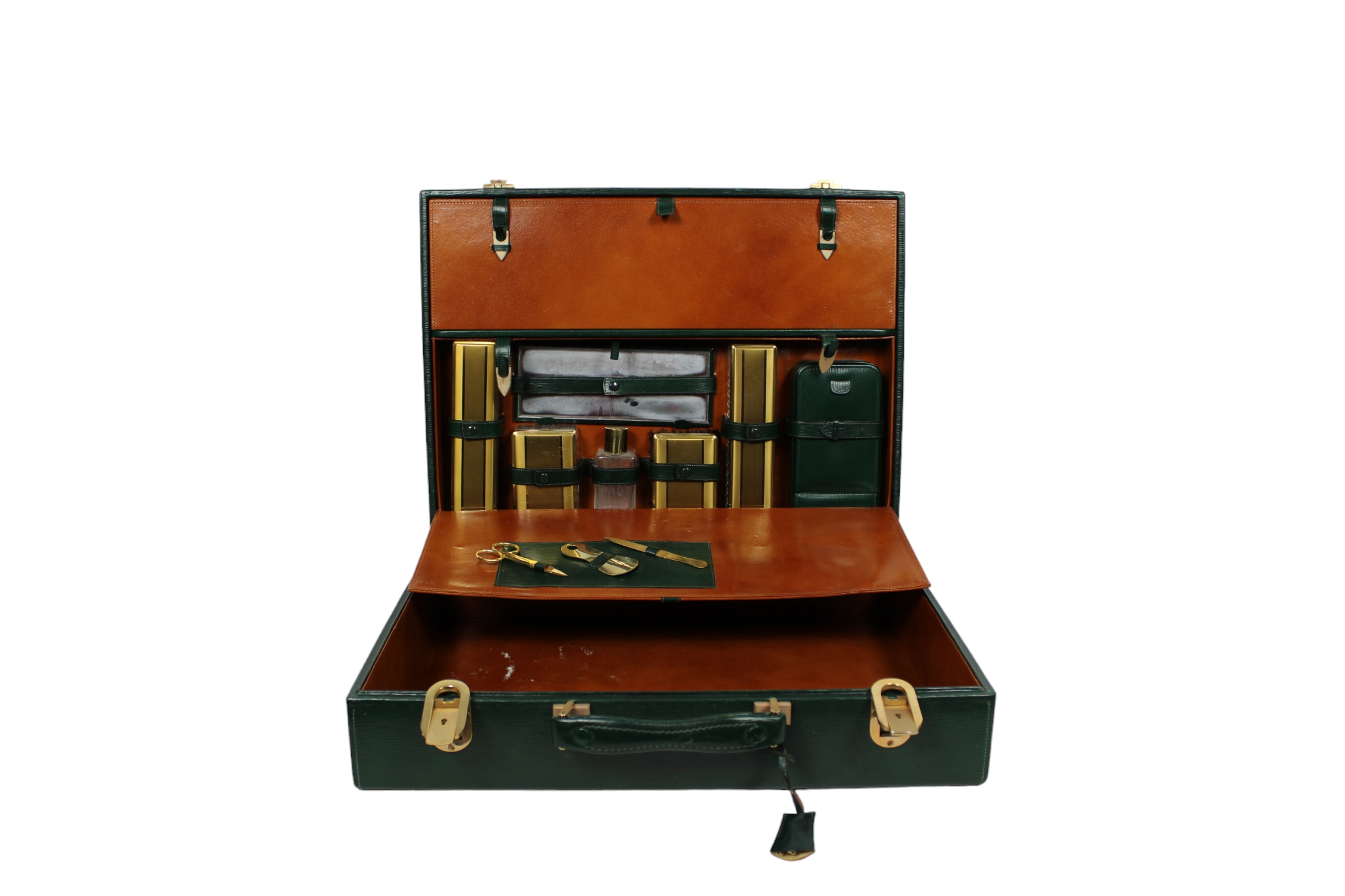 VALIGETTA SET PER TOILETTE rivestita in pelle maestranze italiane primi 900 h cm 45 x 33 x 13