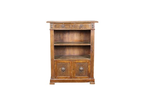 MOBILE STUDIO in legno di noce scolpito con 2 sportelli cartiera centrale e cassetto nella parte superiore di gusto rinascimentale Sicilia XX secolo h cm 103 x 80 x 40