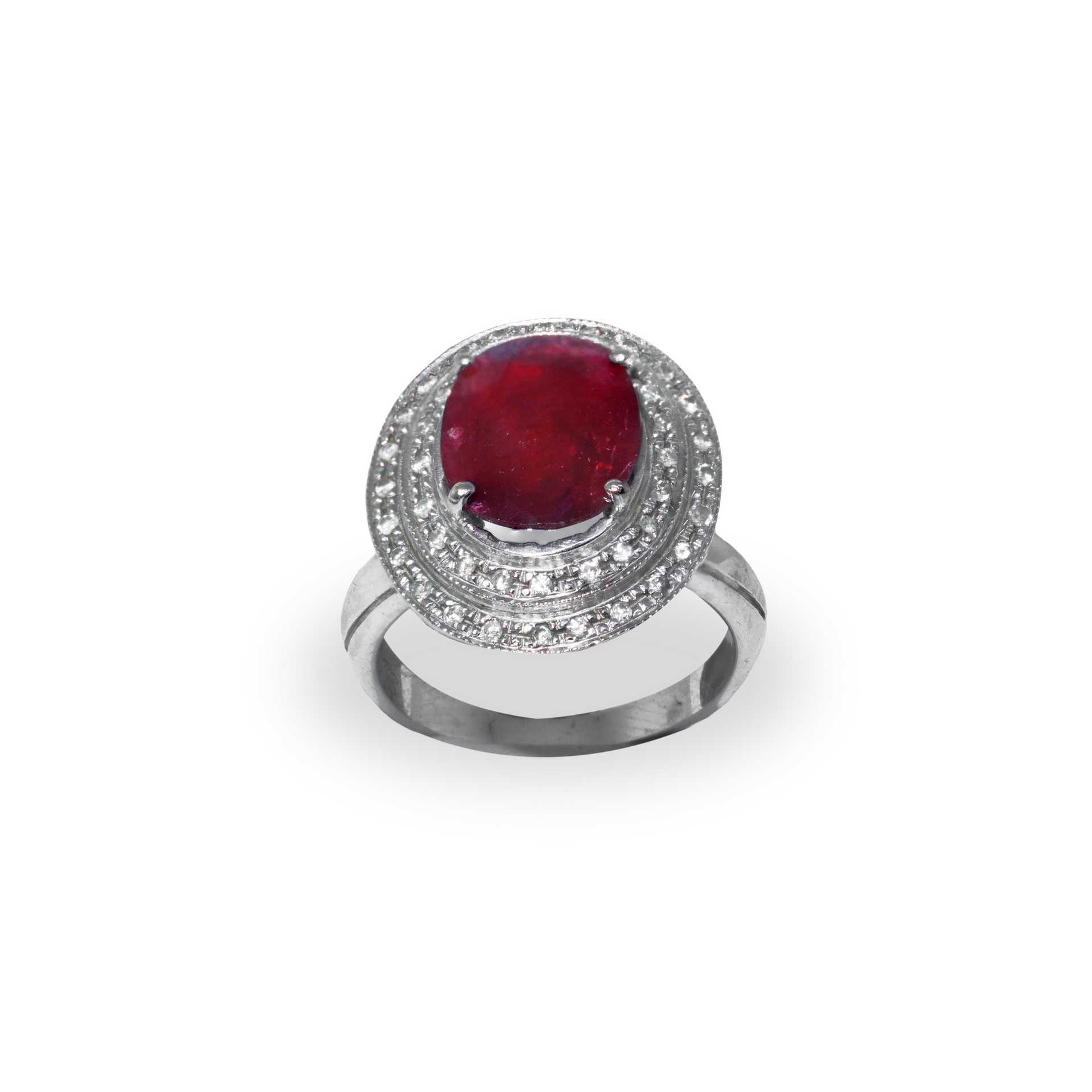 Anello in oro bianco 750 con rubino naturale non trattato 4,5 kt e brillanti