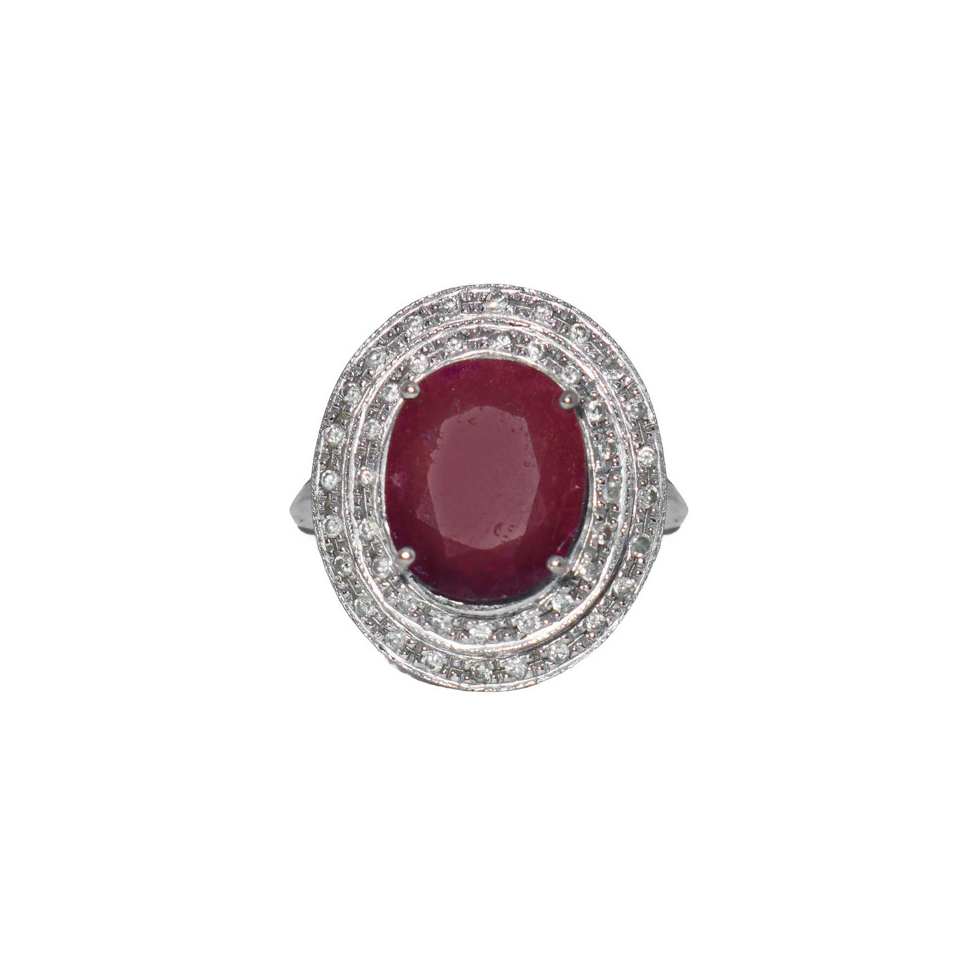 Anello in oro bianco 750 con rubino naturale non trattato 4,5 kt e brillanti Misura 18, gr 8 Rubino naturale non trattato 4,5 kt con inclusioniRubino naturale non trattato 4,5 kt con inclusioni