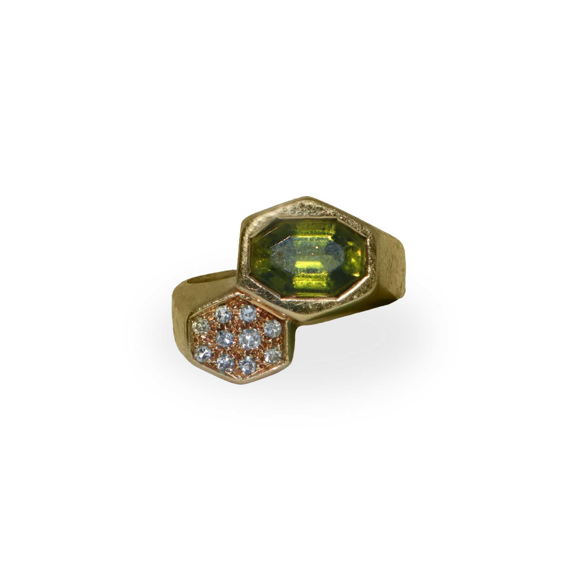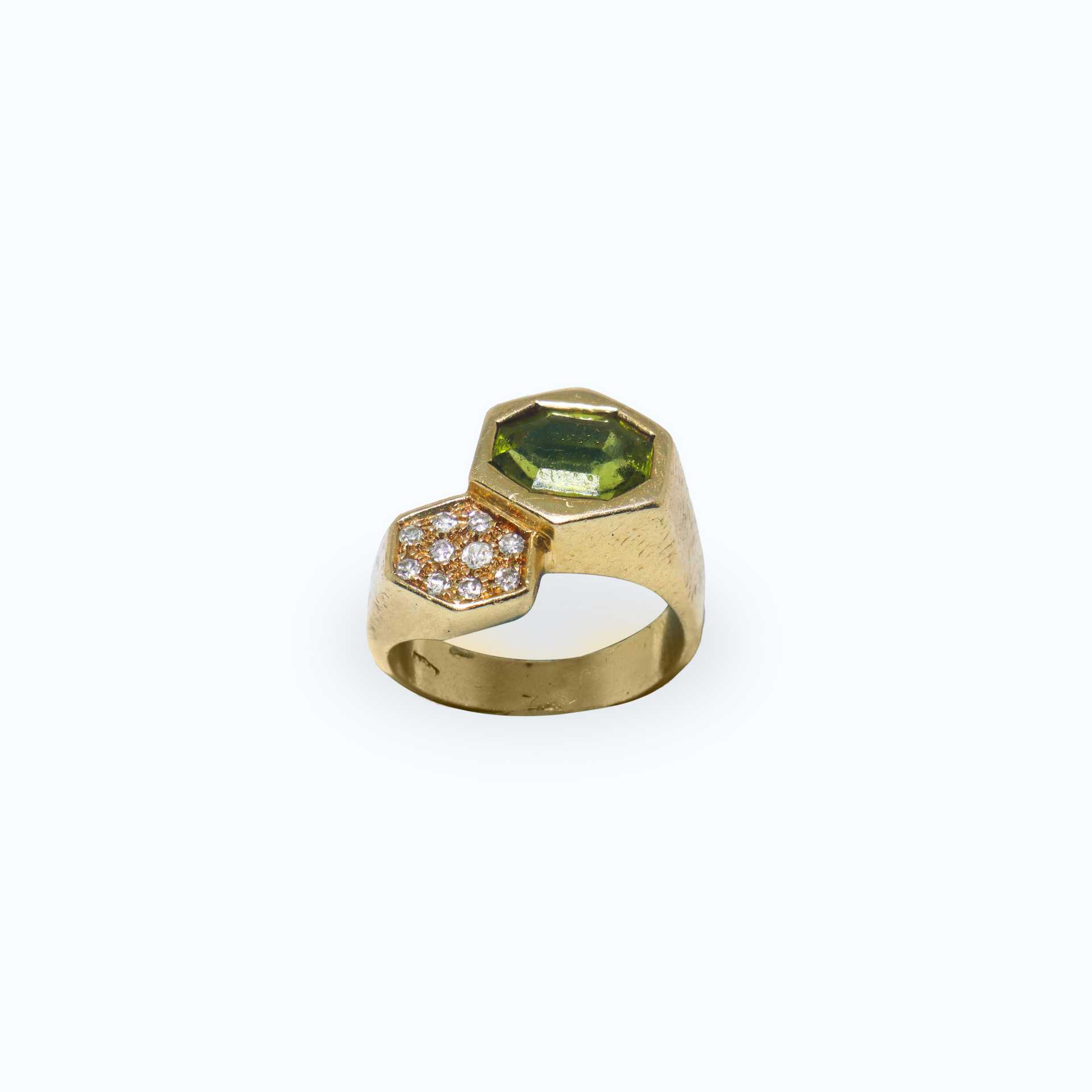 Lot 53 | Anello contrariè in oro giallo con peridoto e diamanti taglio brillante