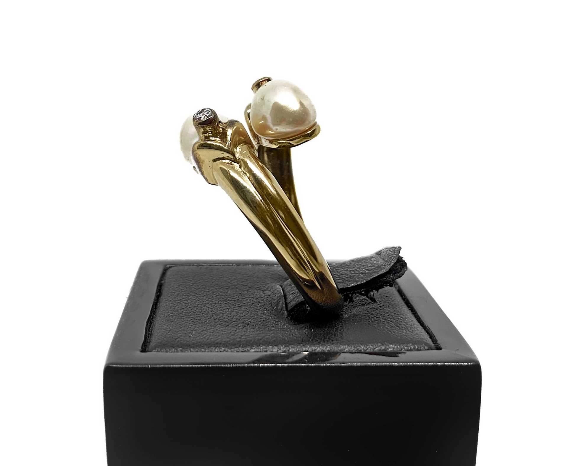 Anello in argento e perle, 20° secolo Gr. 4,9, misura 13. Con perle ovali con brillantini.