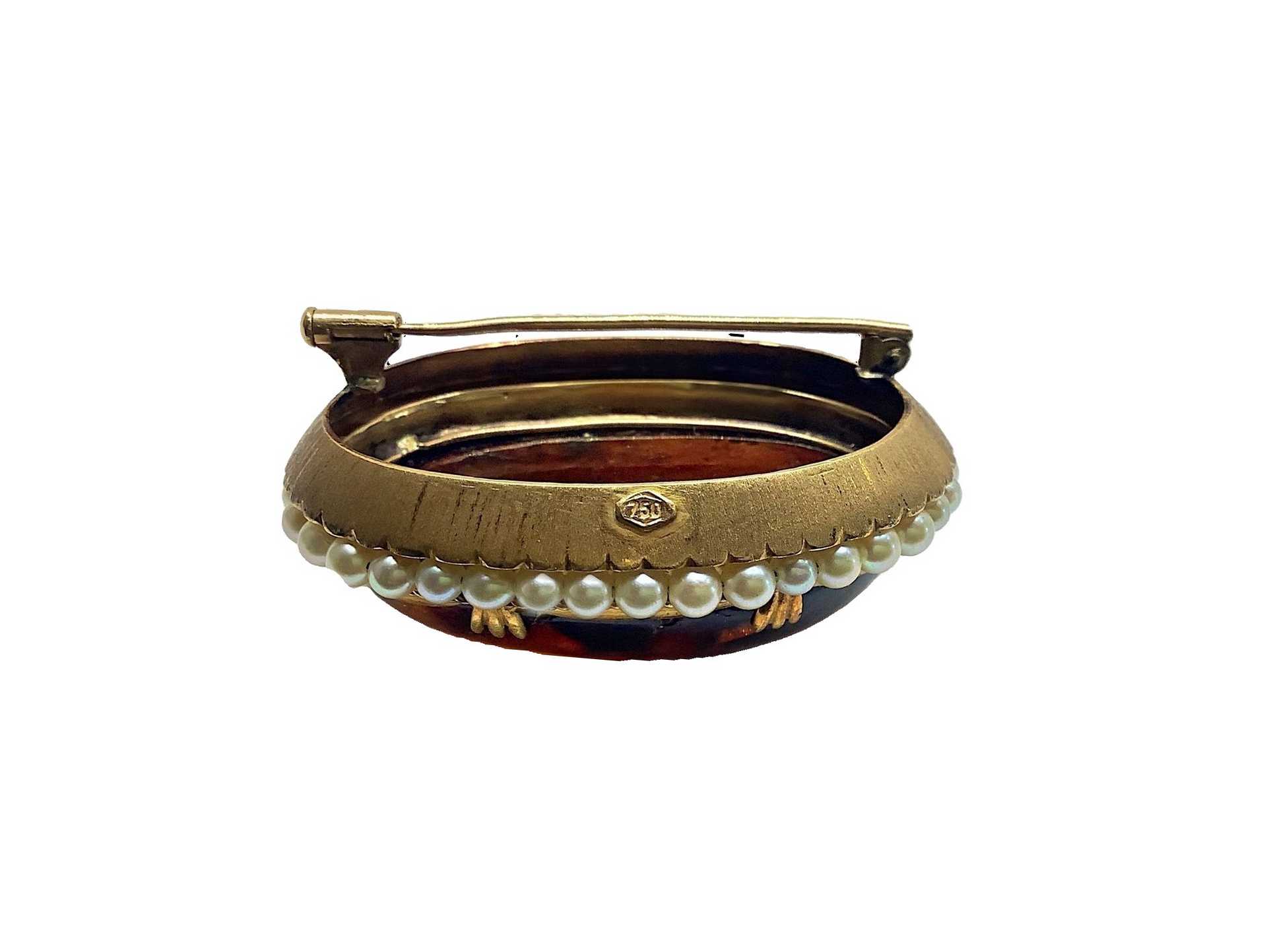 Spilla con ovale in ambra e contornata da perline h cm 4,7x 3,3 20,3 gr20,3 gr