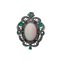 Ciondolo in oro a basso titolo e argento con corallo rosa centrale, brillanti taglio antico e smeraldi
