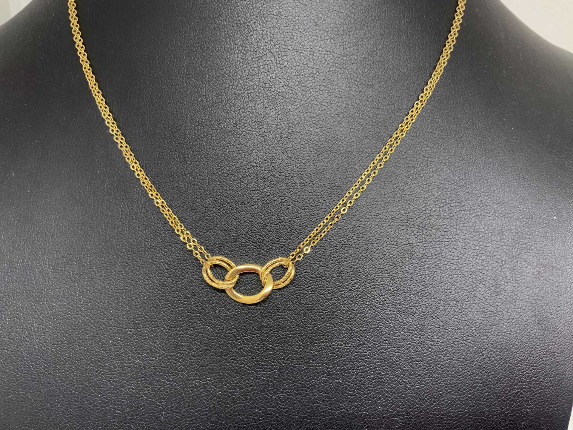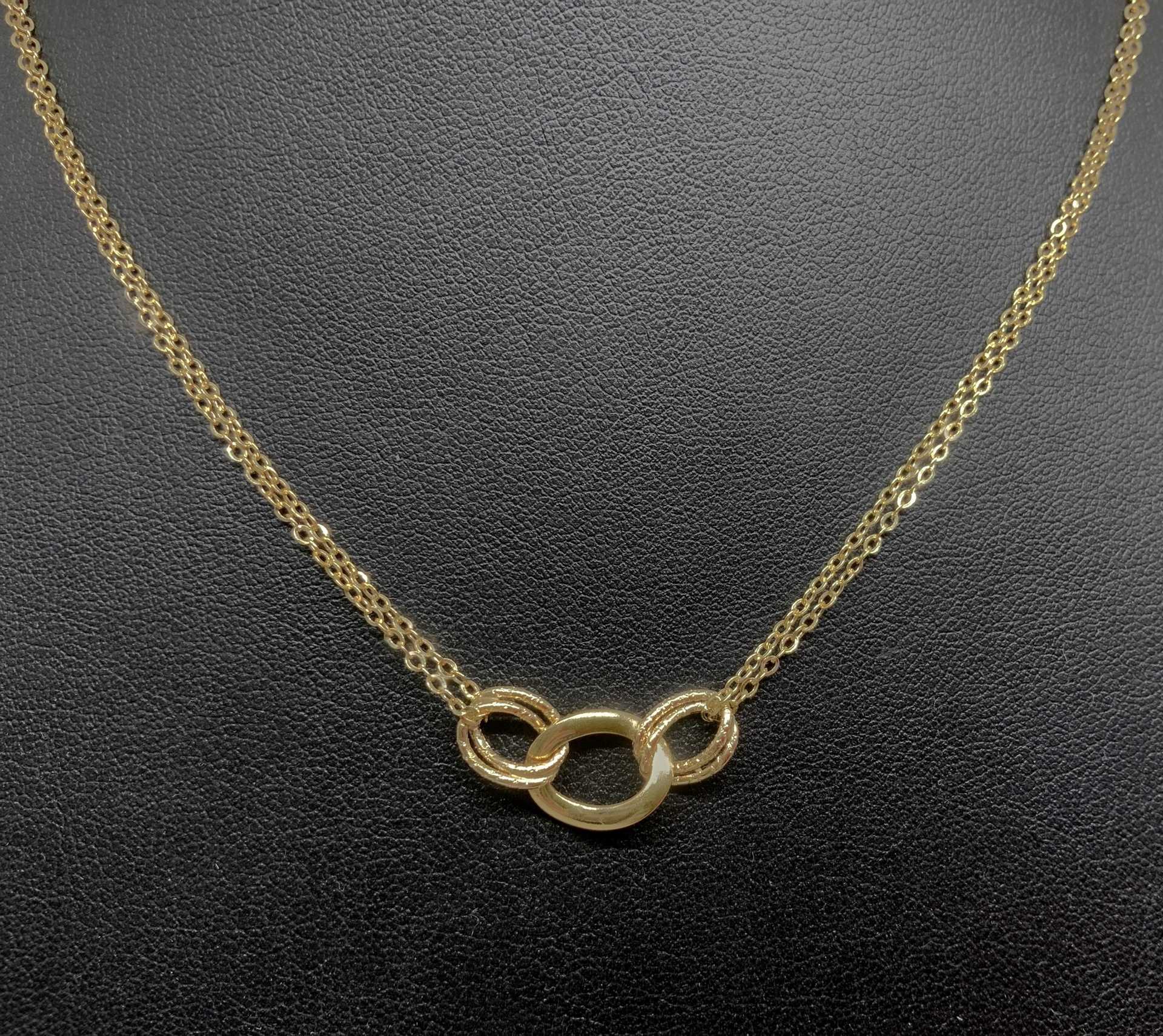 Girocollo in oro, 20° secolo Gr. 2 Lavorazione della catena con centrale a larghe maglie.Lavorazione della catena con centrale a larghe maglie.