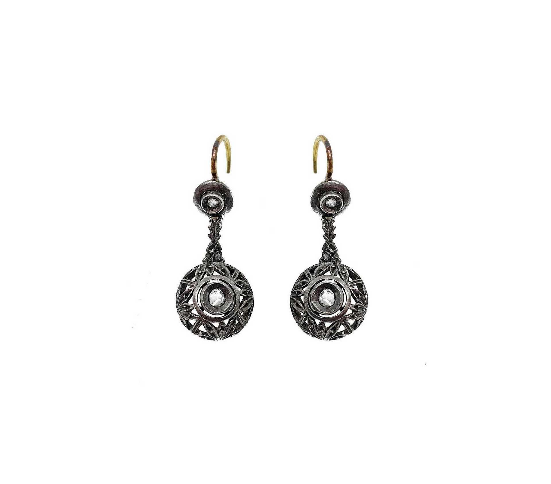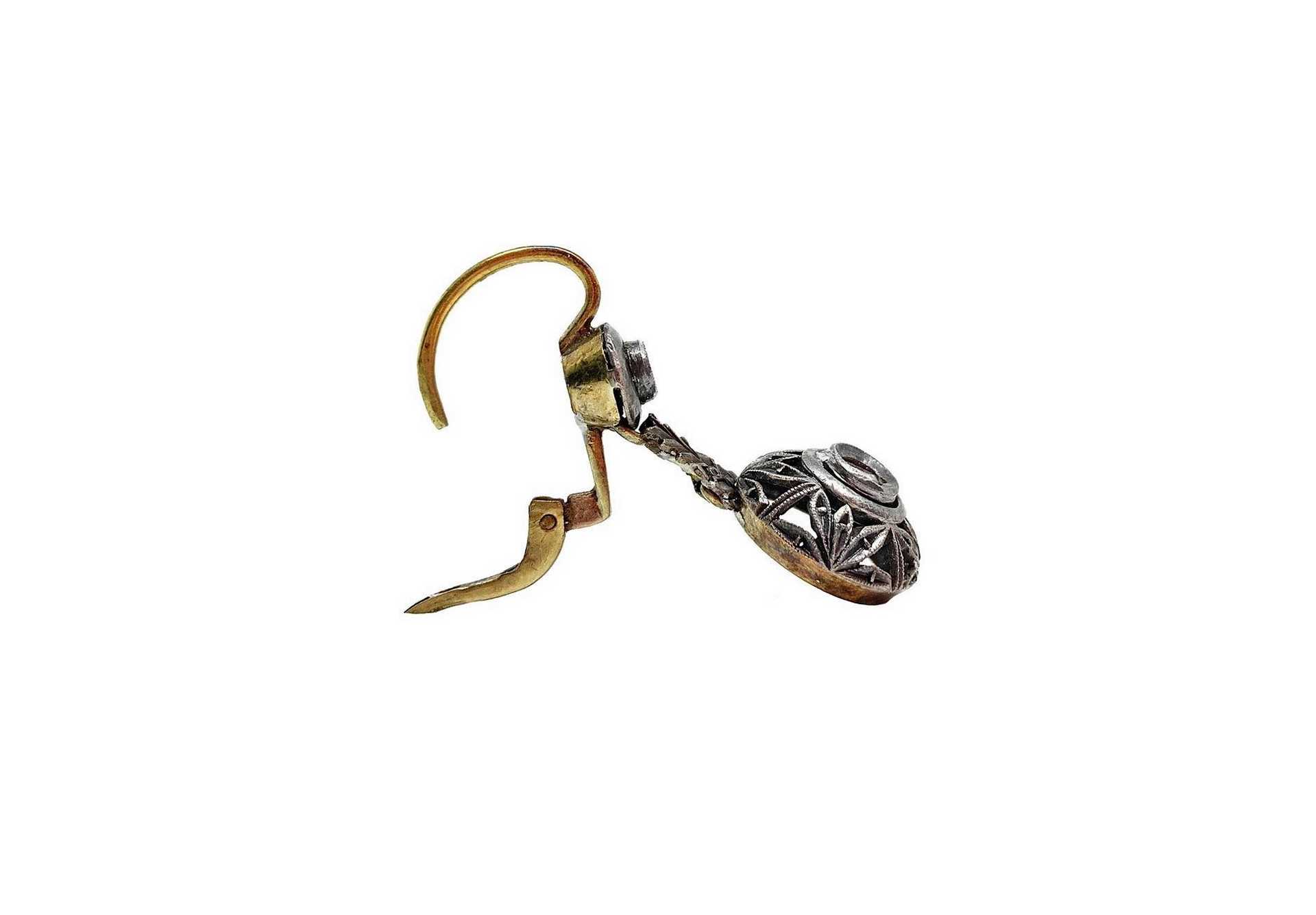 Orecchini in argento e oro, nineteen° secolo Gr 4.2 piccoli pendenti con diamanti rose coronepiccoli pendenti con diamanti rose corone