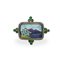 Spilla/Pendentif in oro giallo 750 contornata da diamanti taglio brillante e pietre con raffugrazione dell'Etna in smalto