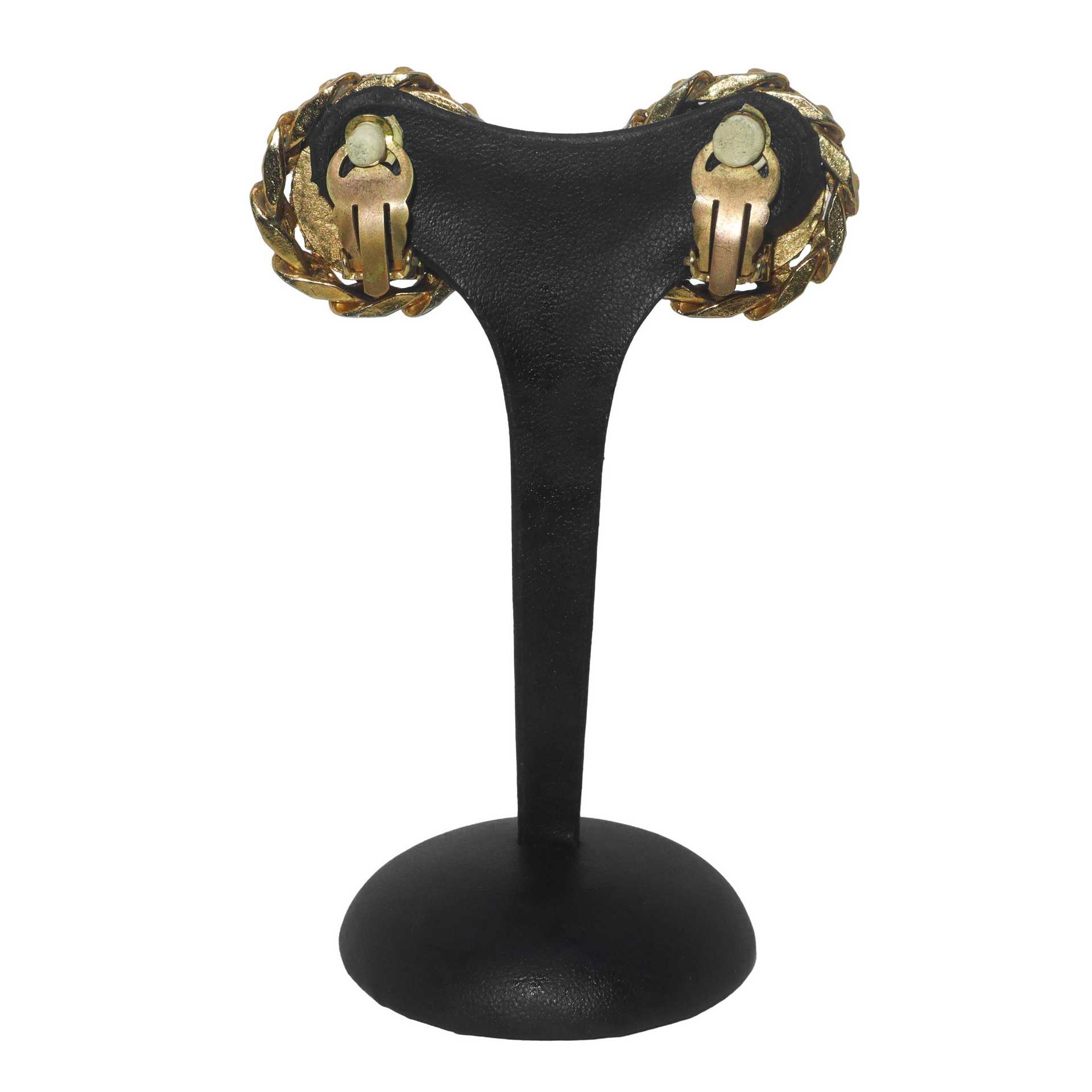 Chanel - Orecchini Chanel a clip modello a bottone, logo con strass e bordatura chain, 1988