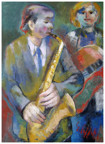 EMANUELE CAPPELLO Vittoria 1936 Il sassofono Olio su tela 70 x 50. Firma in b. a s.; sul verso firma e data.