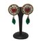 Chanel - Orecchini Chanel pendenti a clip decorati con strass e pietra centrale cabochon in pasta di vetro, 80s cm 2,7
