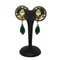 Chanel - Orecchini Chanel pendenti a clip decorati con strass e pietra centrale cabochon in pasta di vetro, 80s