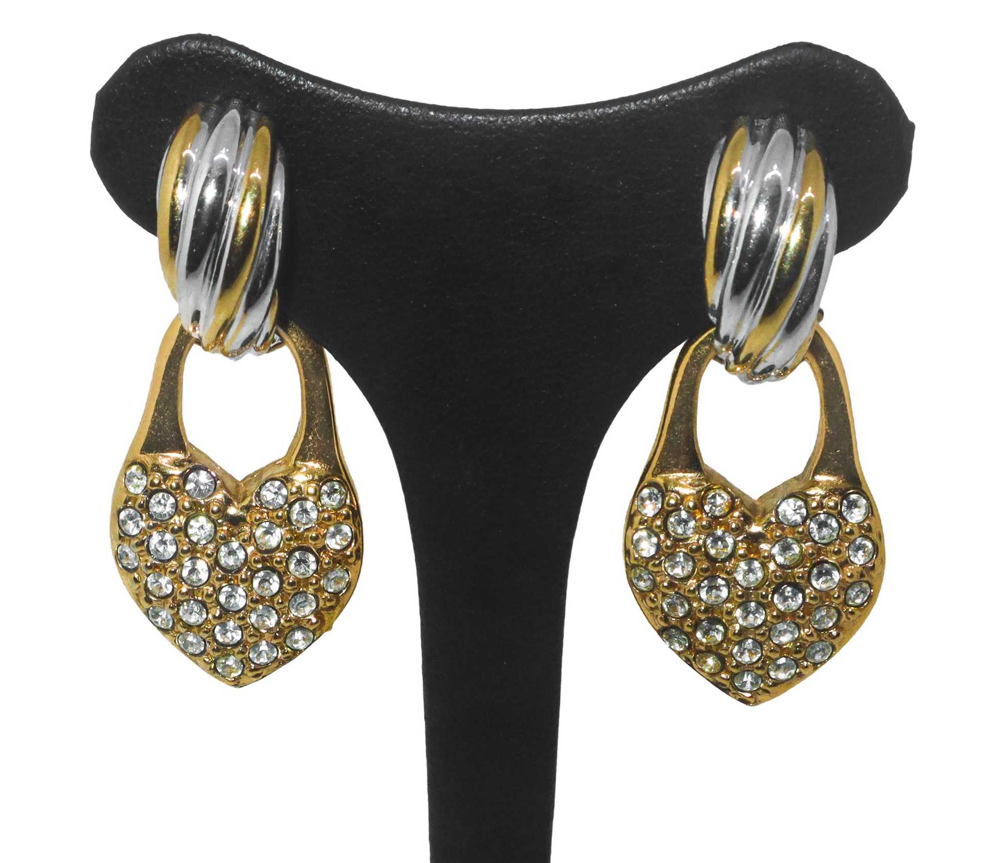 Agatha Paris (Francia 1974) - Orecchini pendenti a clip con cuore con stras e gioco di colori dorato e argentato cm 2 Marchio Agatha Paris sul retro.Marchio Agatha Paris sul retro. Questo lotto è soggetto a diritto di seguito