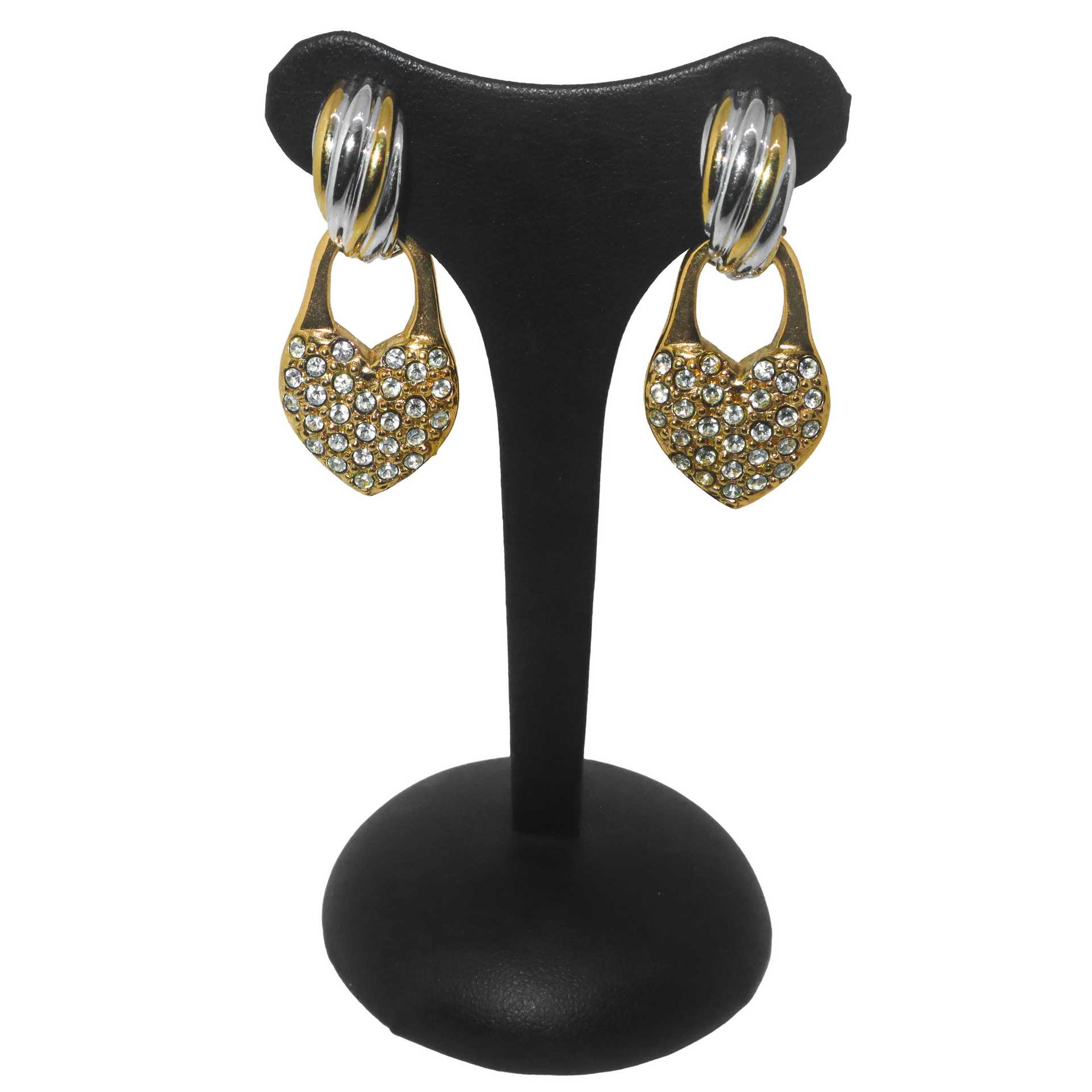 Agatha Paris (Francia 1974) - Orecchini pendenti a clip con cuore con stras e gioco di colori dorato e argentato