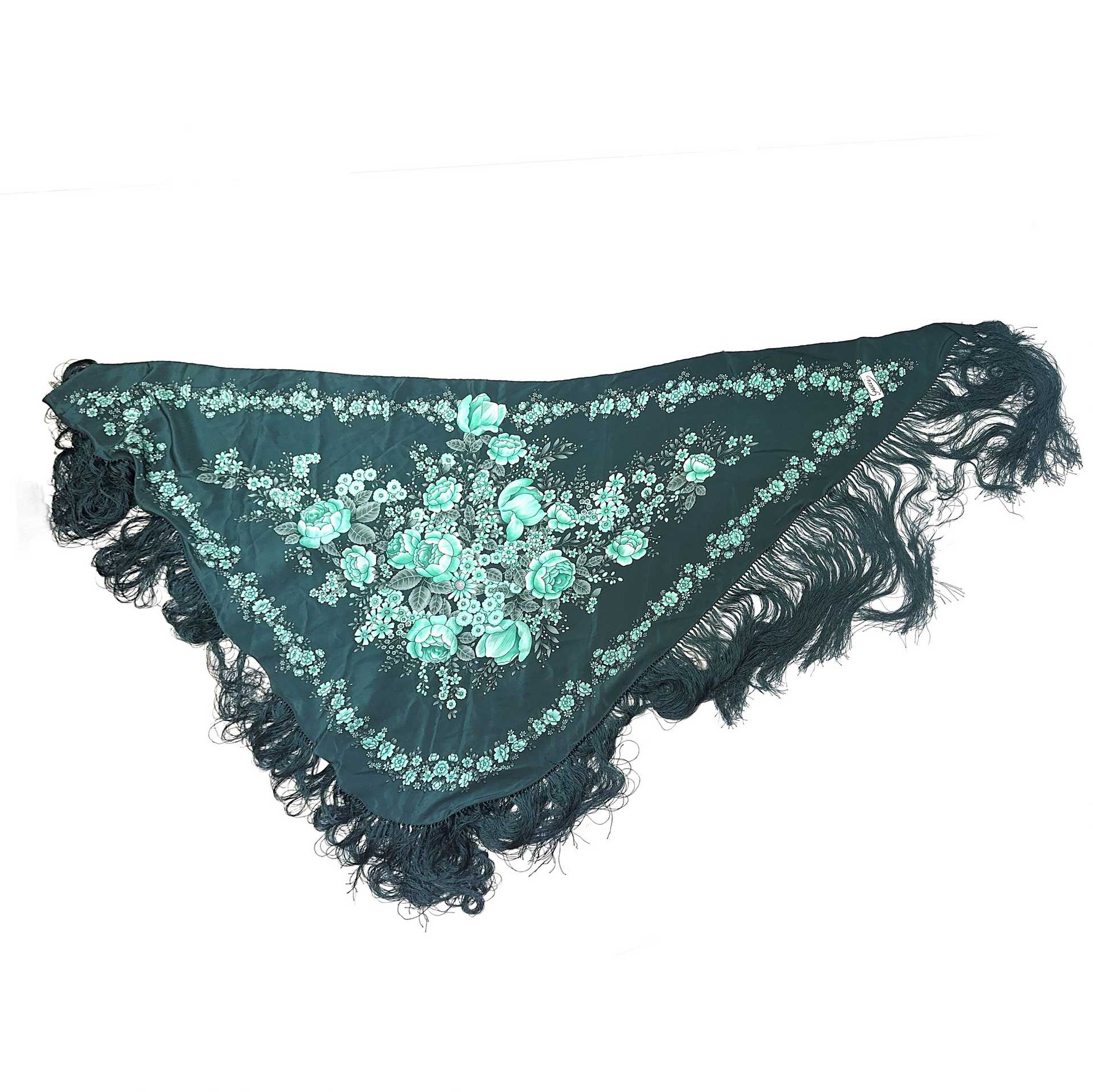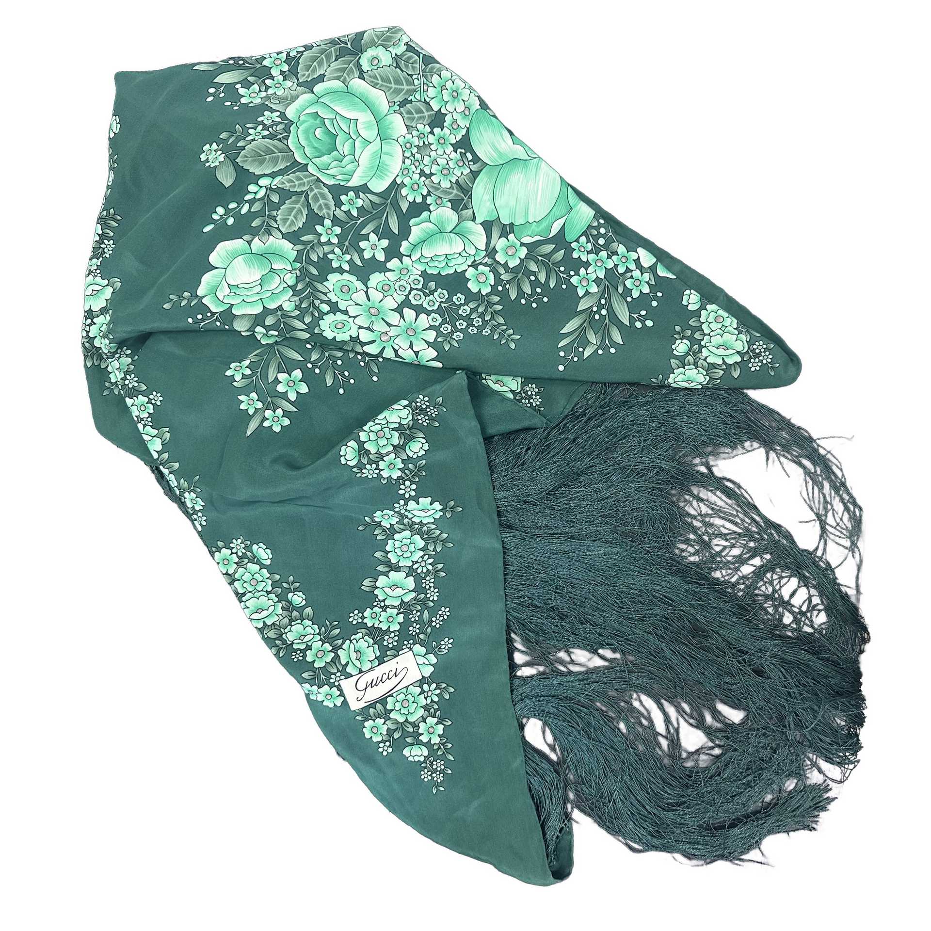 Gucci - Scialle in seta verde con frange pattern floreale, 2015 approx