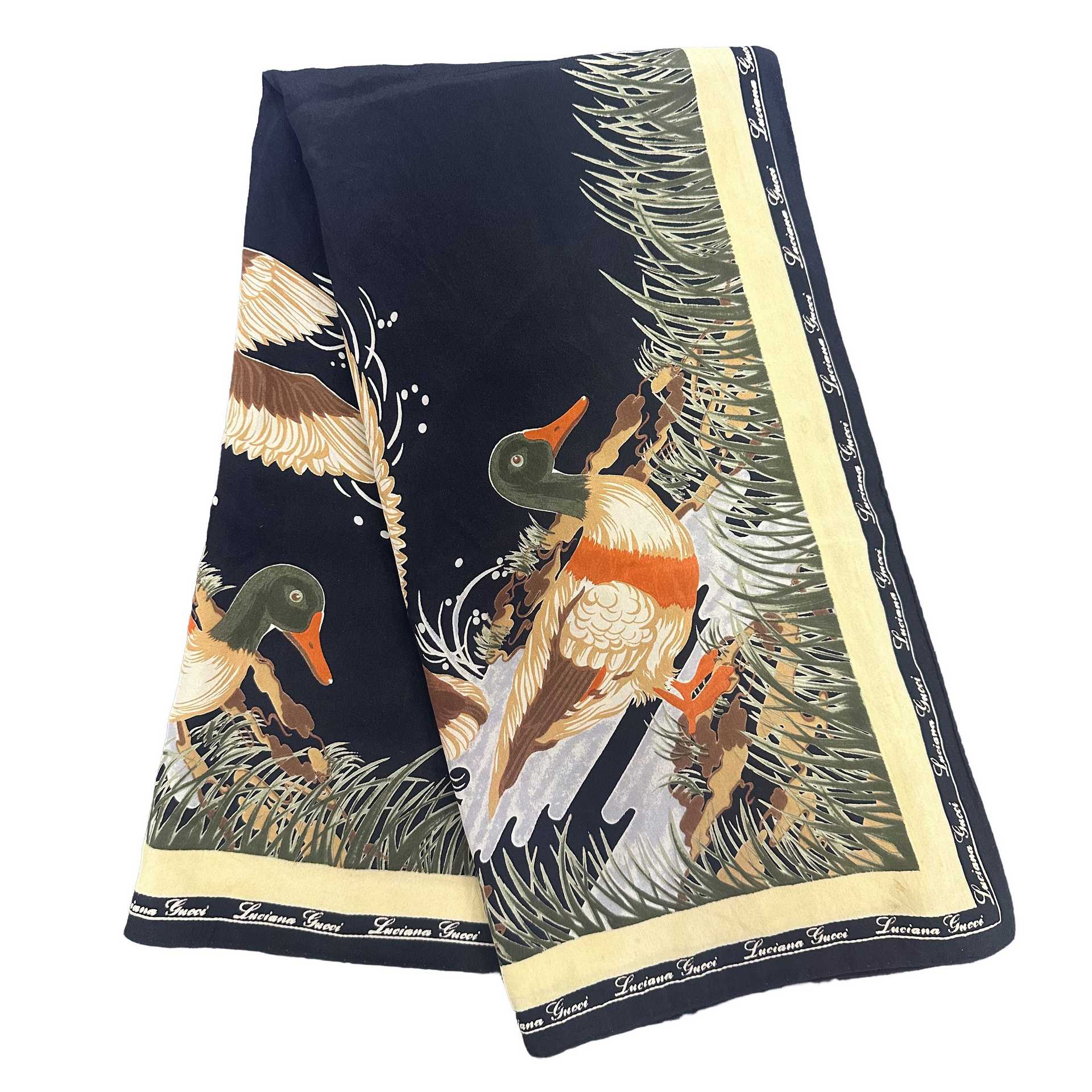 Gucci - Foulard su fondo nero con anatre agli angoli