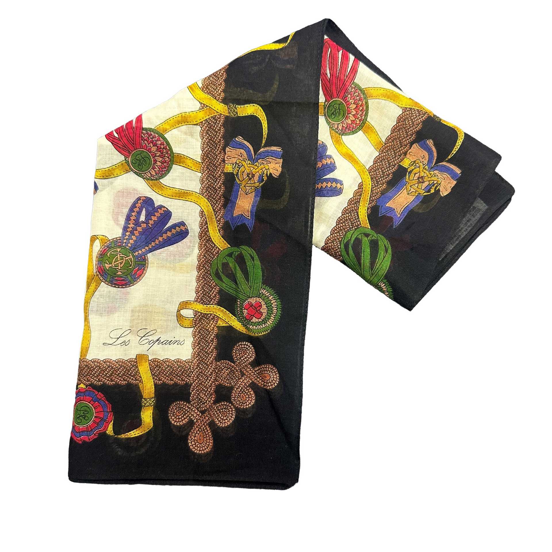 Les copains - Sciarpa Fazzoletto in cotone su fondo panna bordi neri e decori cm 43X43 Marchio laterale a destra Marchio laterale a destra