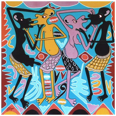GEORGE LILANGA Kikwetu (Tanzania) 1934 – Dar es Salaam (Tanzania) 2005 Kupendana niwajibu 2001 Olio su faesite 61 x 61. Firma in b. a s.; sul verso titolo e data. Autentica galleria Rosenfend, Bad Kissingen su foto. Pubbl.: “George Lilanga” cat. mostra a cura di Silvio Guarasci, Saletta Viviani, Pisa, 10 giugno – 30 luglio 2006, p.57.