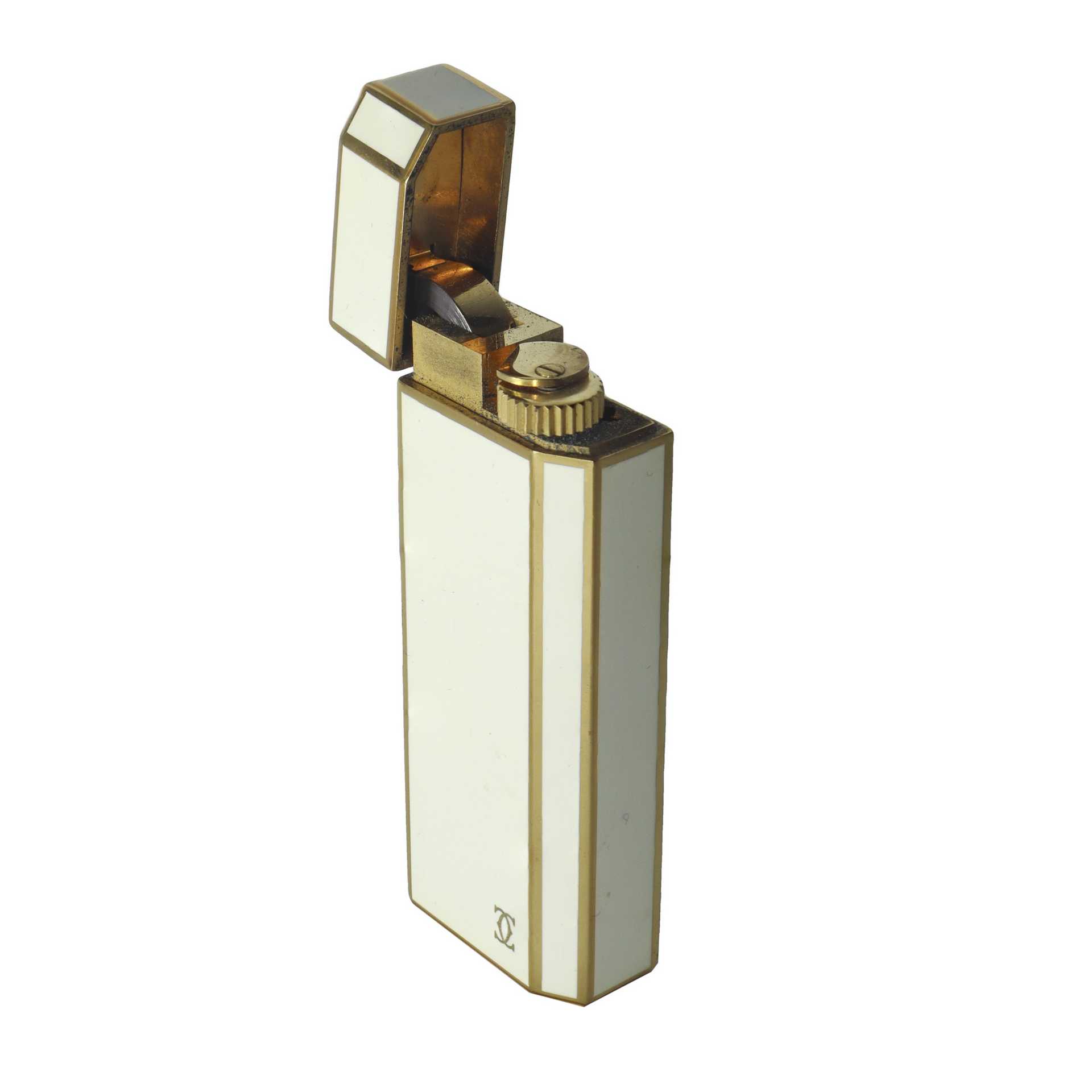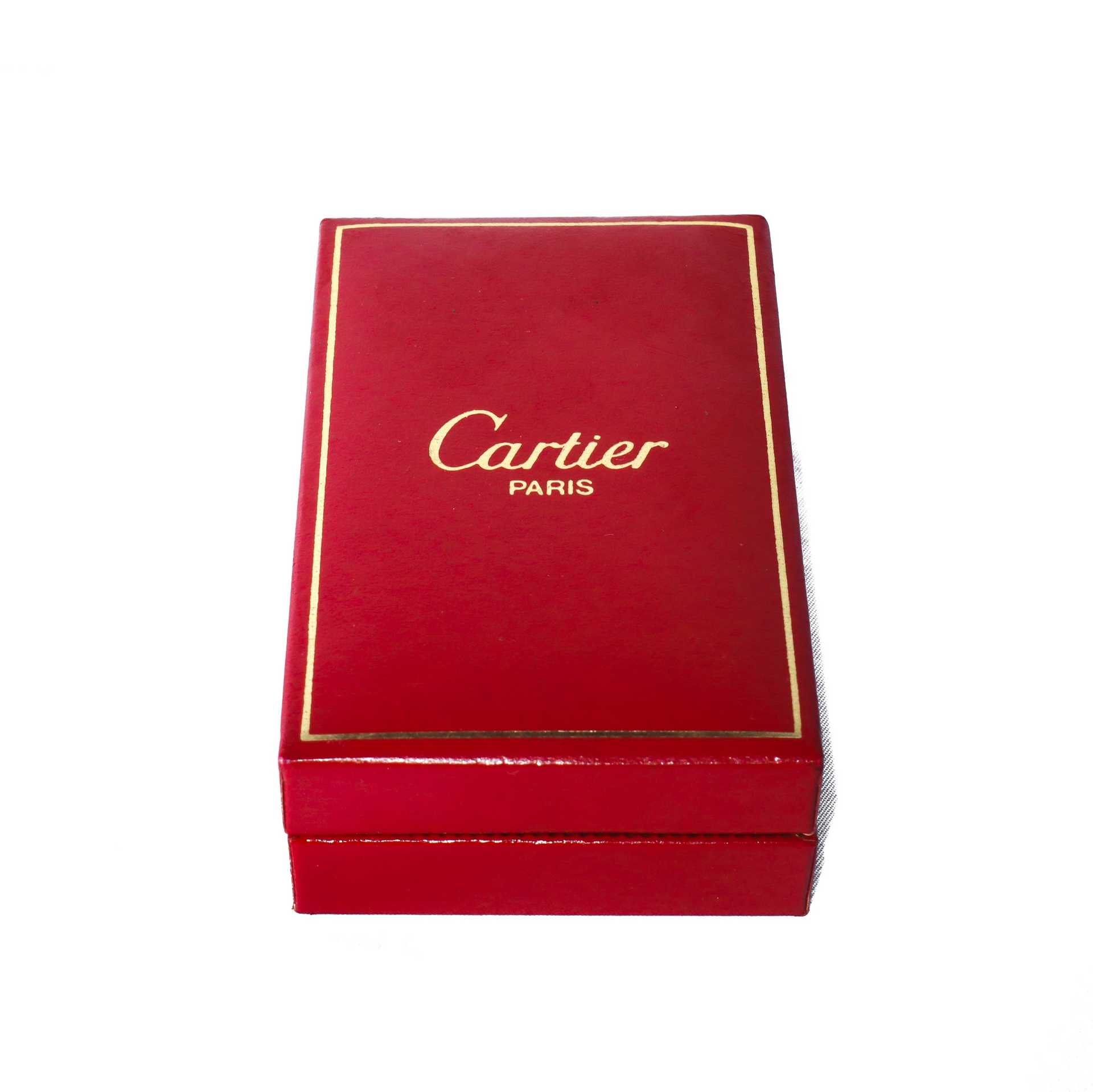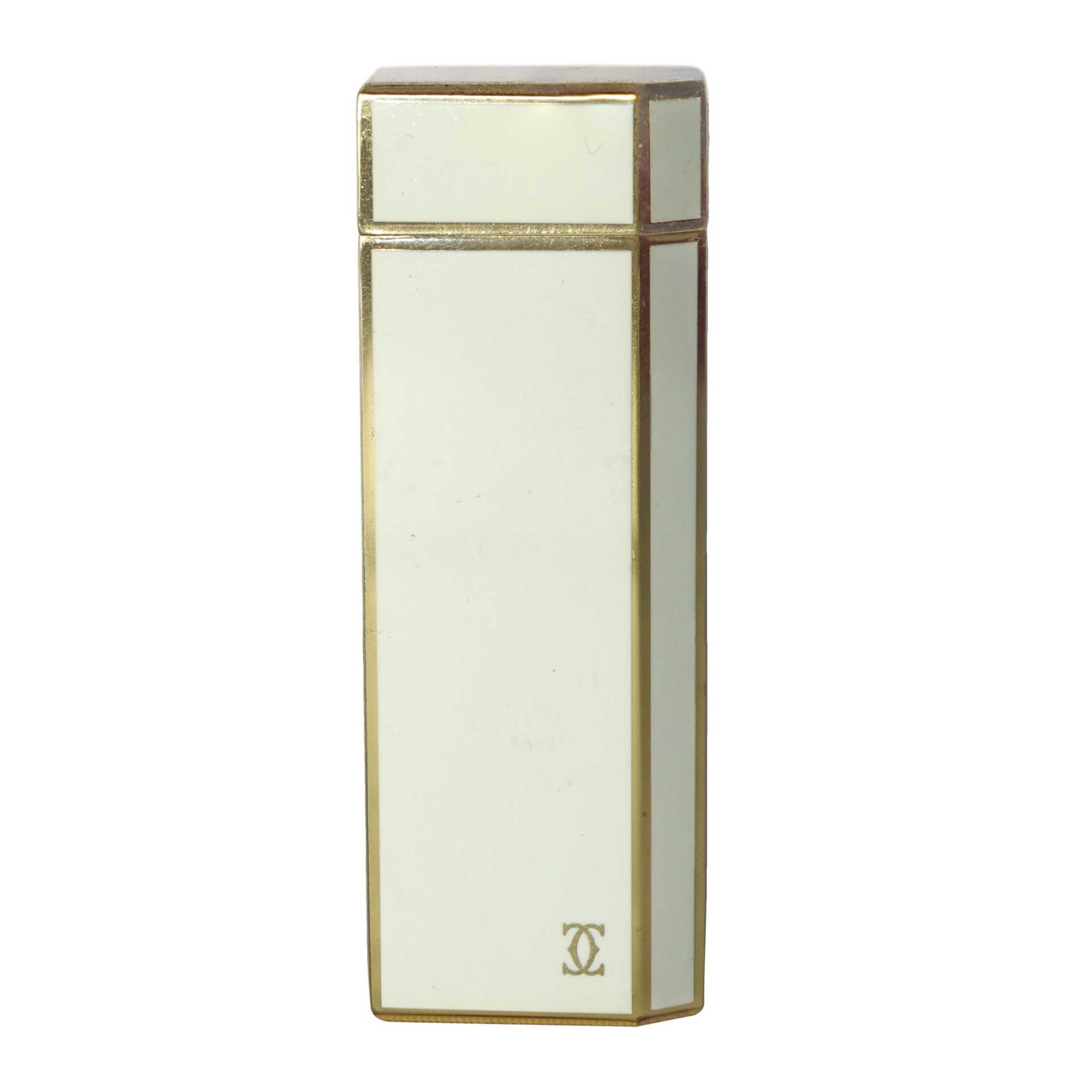 Cartier - Accendino placcato in oro smaltato bianco gr.98,1 cm 7,5X2,5 Dotato di scatola in pelle rossa. Marchio sul fronte. Da revisionare Dotato di scatola in pelle rossa. Marchio sul fronte. Da revisionare