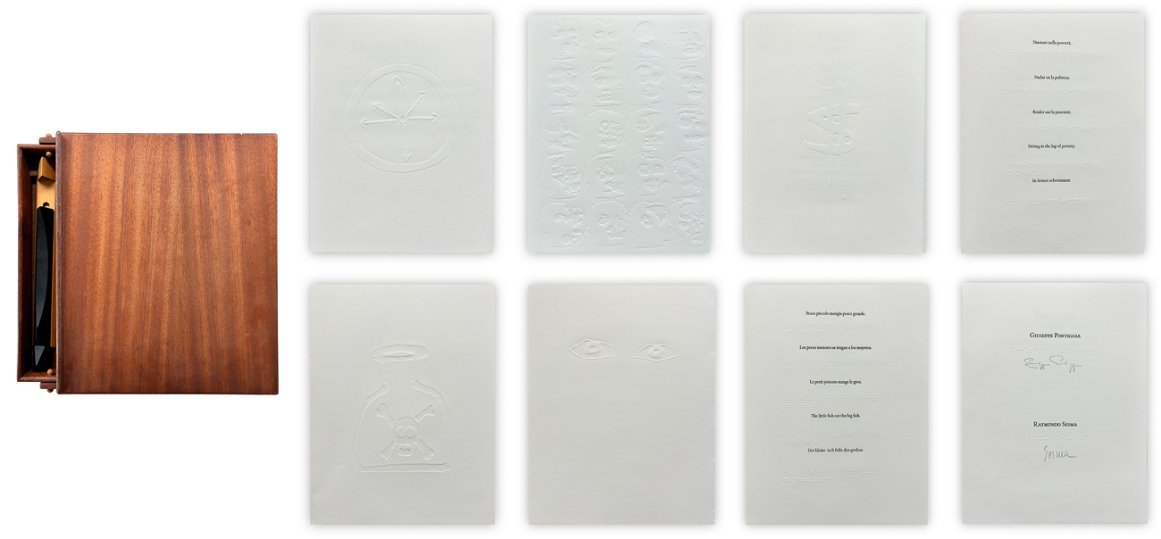 Edizione d'arte concepita da Raymundo Sesma contenente testi di Giuseppe Pontiggia e 21 intagli e uno stampo realizzati dall'artista