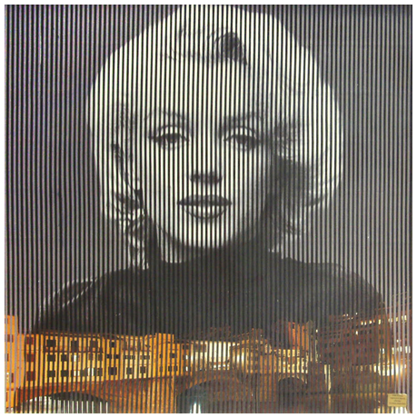 MALIPIERO Brescia 1934 Marilyn Monroe – Ponte Vecchio 2012 Collage su masonite 46 x 46. Firma, data, tecnica, misure, titolo e località sul verso.