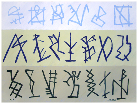 RICCARDO LICATA Torino 1929 - Venezia 2014 Senza titolo 2003 Olio su tela 60 x 80. Firma in b. a d., data in b. a s., altra firma sul verso. Autentica dell’autore su foto. + timbro Studio d’arte G.R., Sacile (PN).