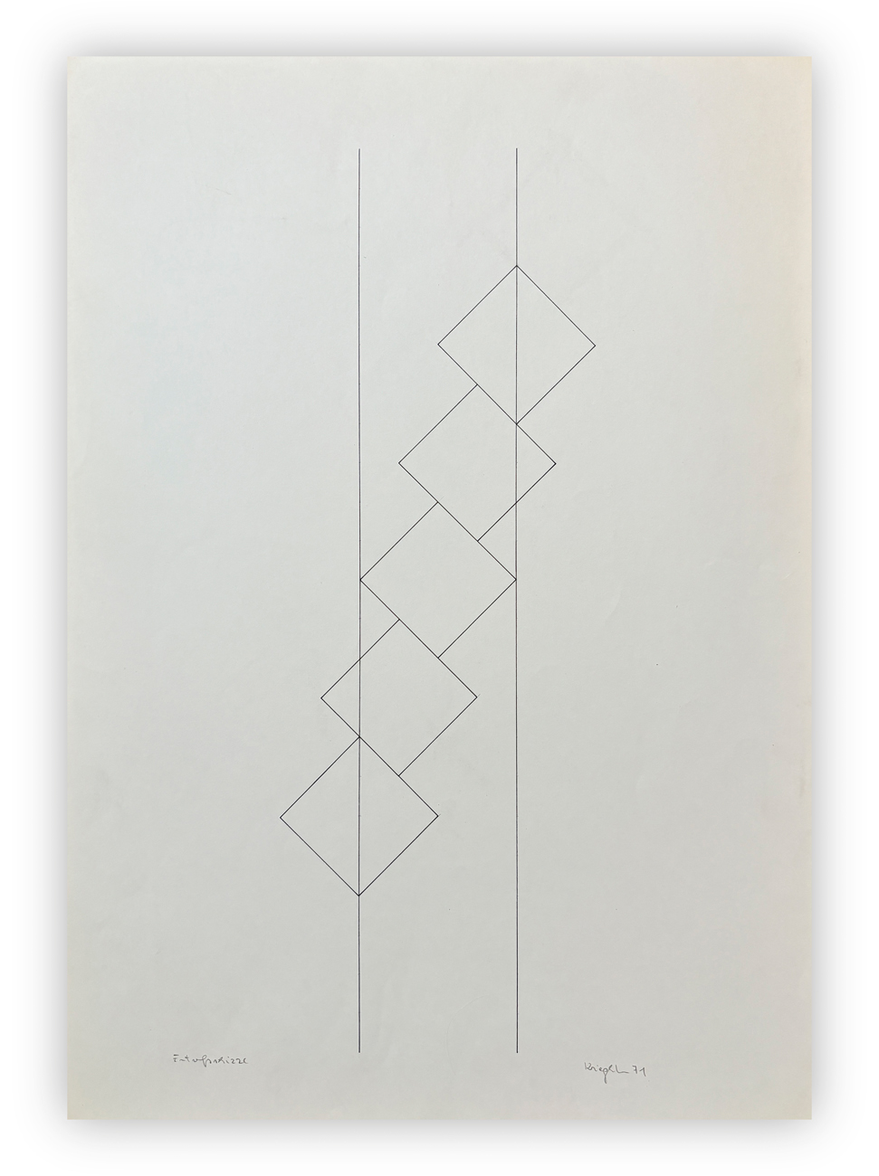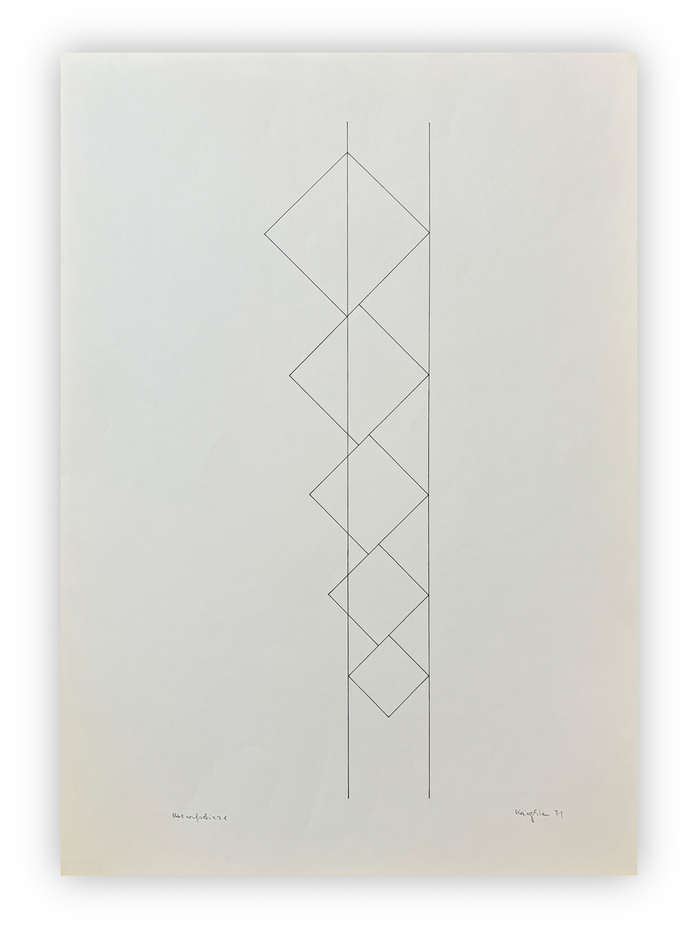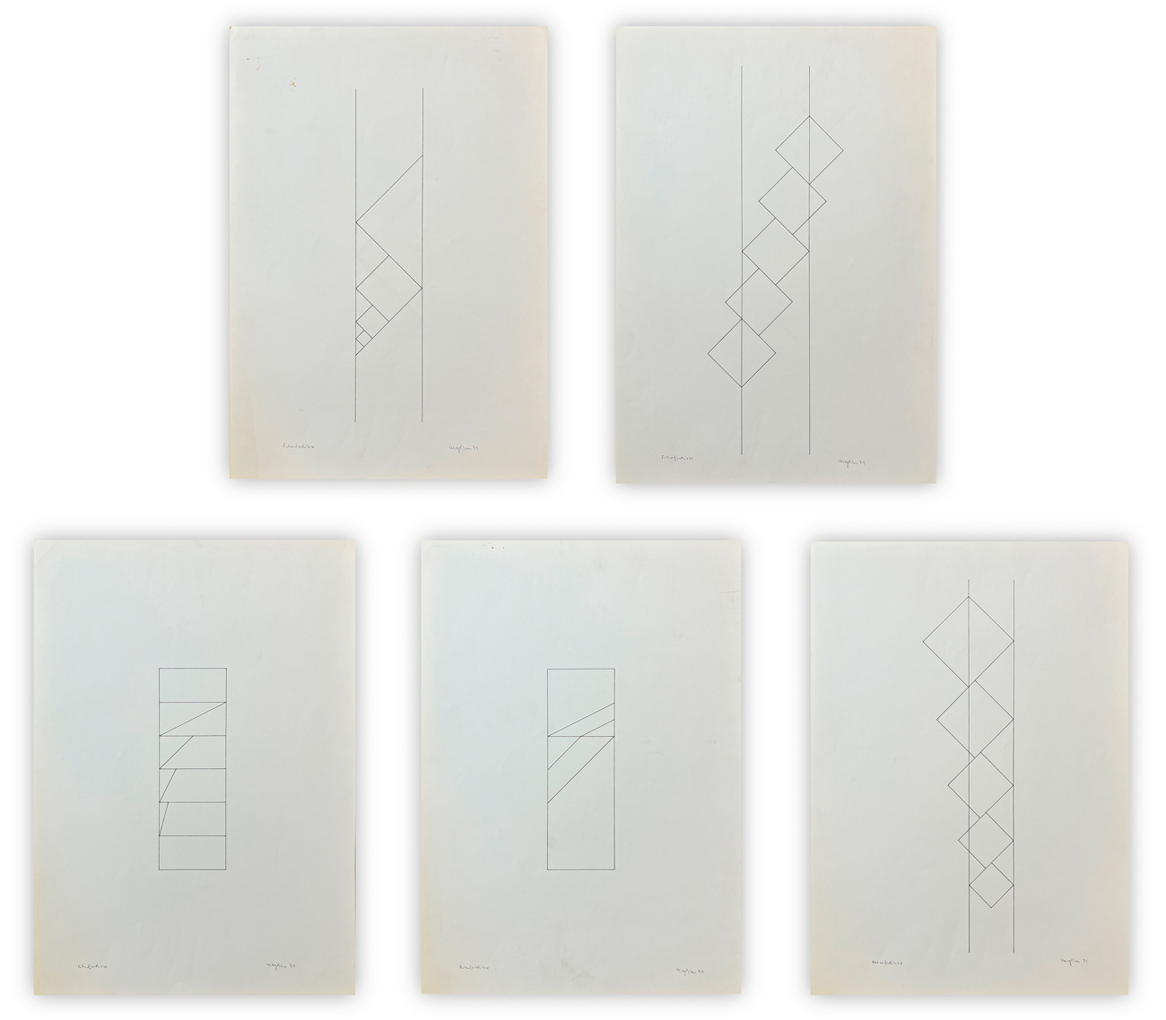 Lotto unico di 5 litografie, ciascuna recante firma indecifrata, datazione (1971) e titolo al fronte