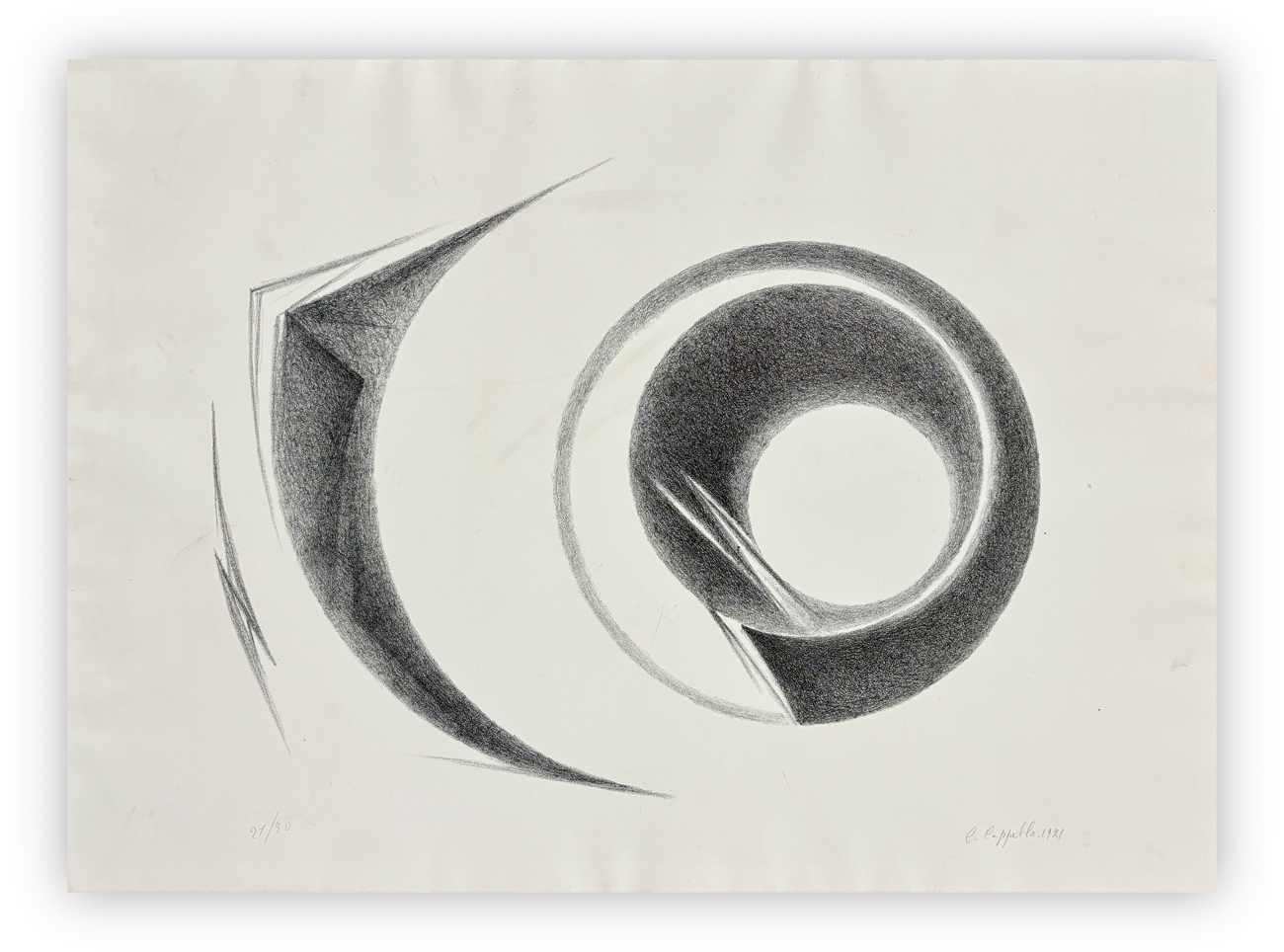 Firma e numerazione (Esemplare 21/50) a matita al fronte