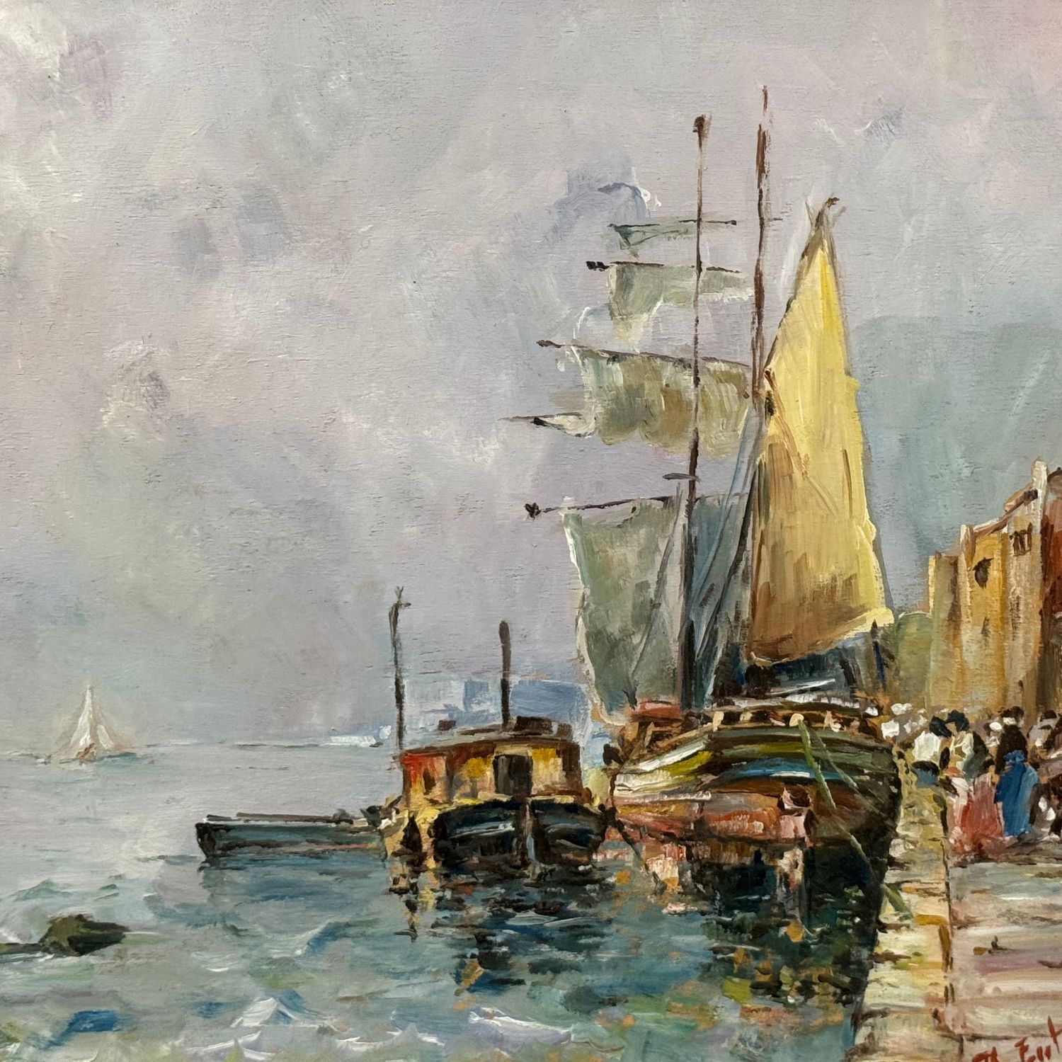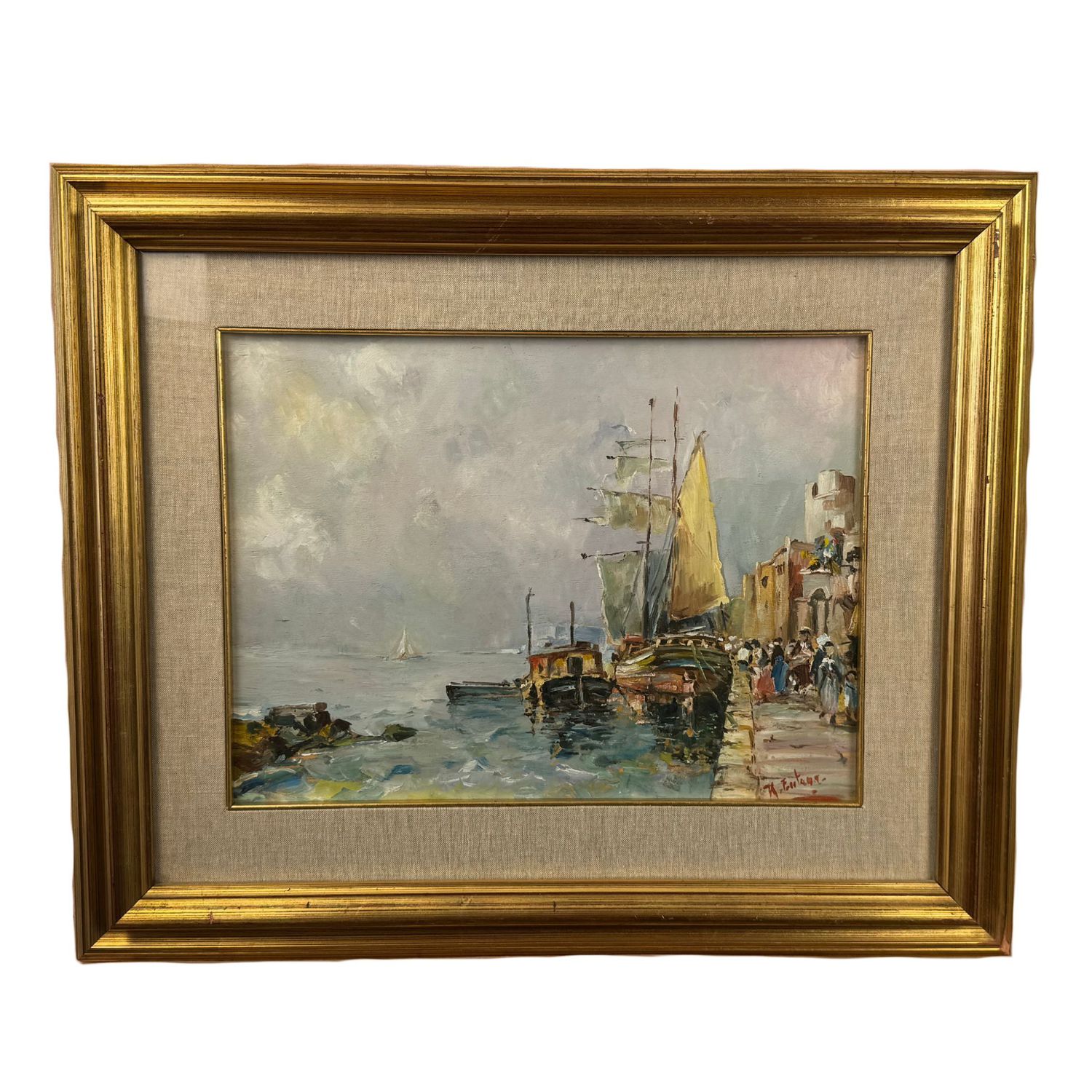 Dipinto olio su tavola, periodo XX secolo scuola Italiana, raffigurante Paesaggio marino.