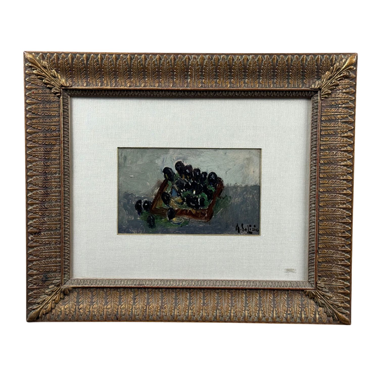 Dipinto olio su cartoncino, periodo XX secolo scuola Italiana, raffigurante Cozze.