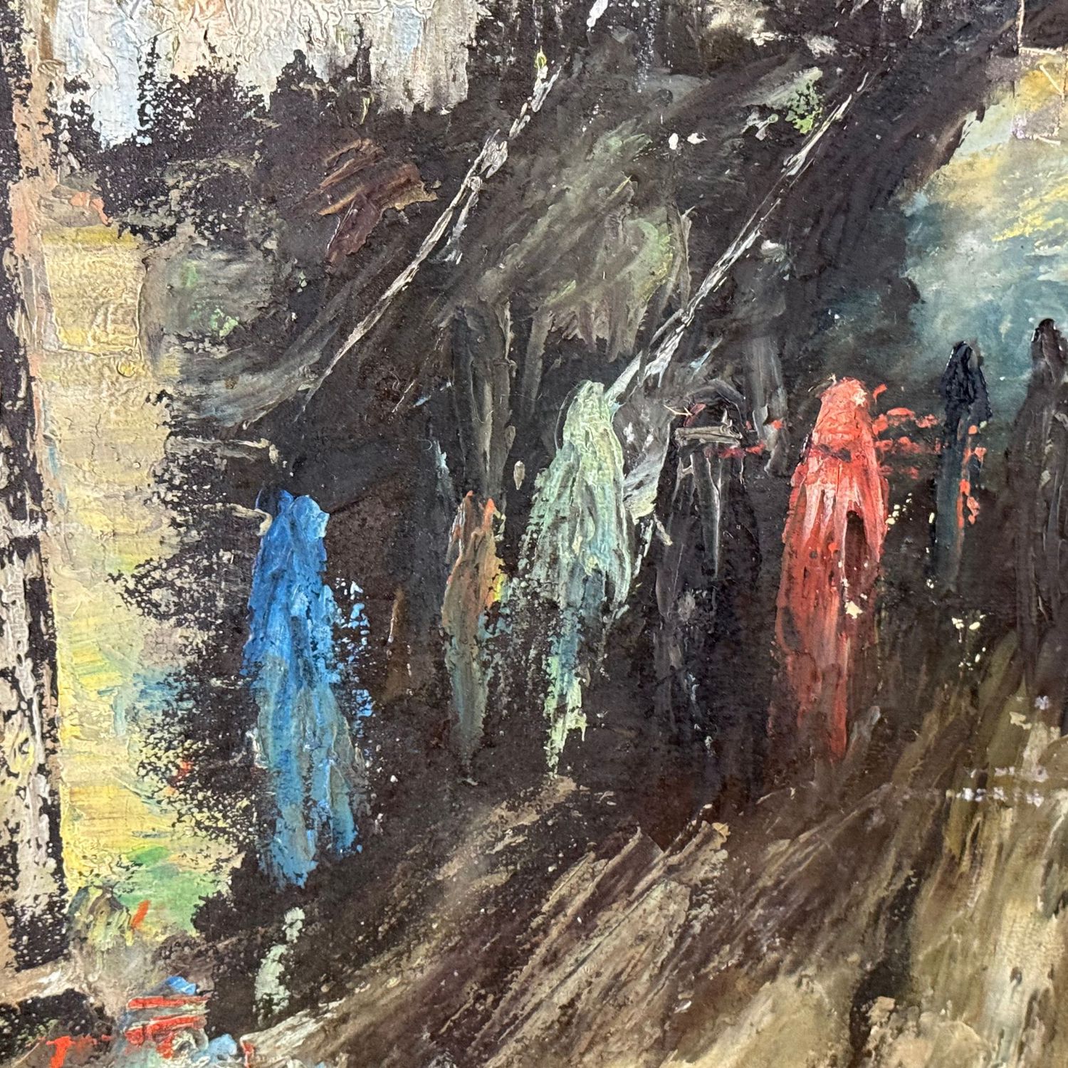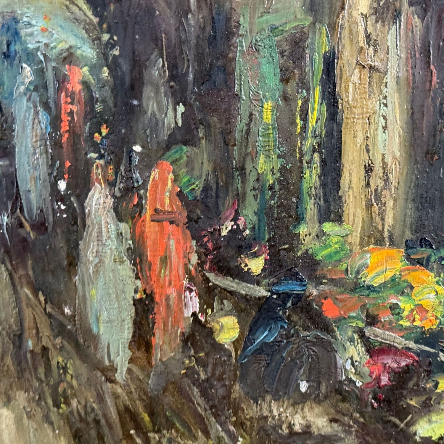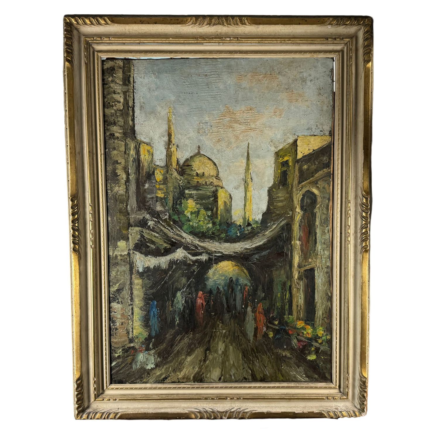Dipinto olio su tela, periodo prima metà del XX secolo scuola Italiana, raffigurante Strada con personaggi a Istanbul. Dimensioni interno cornice: 70x100 cm. Dimensioni compreso cornice: 92x123 cm. Da artista anonimo di area impressionista e di gusto orientale. Opera in buone condizioni con lievi segni di vissuto come da foto allegate. (Piccolo taglio alla tela di circa 4 cm nella zone centrale della tela. Lo stesso taglio non ha provocato cadute di colore).