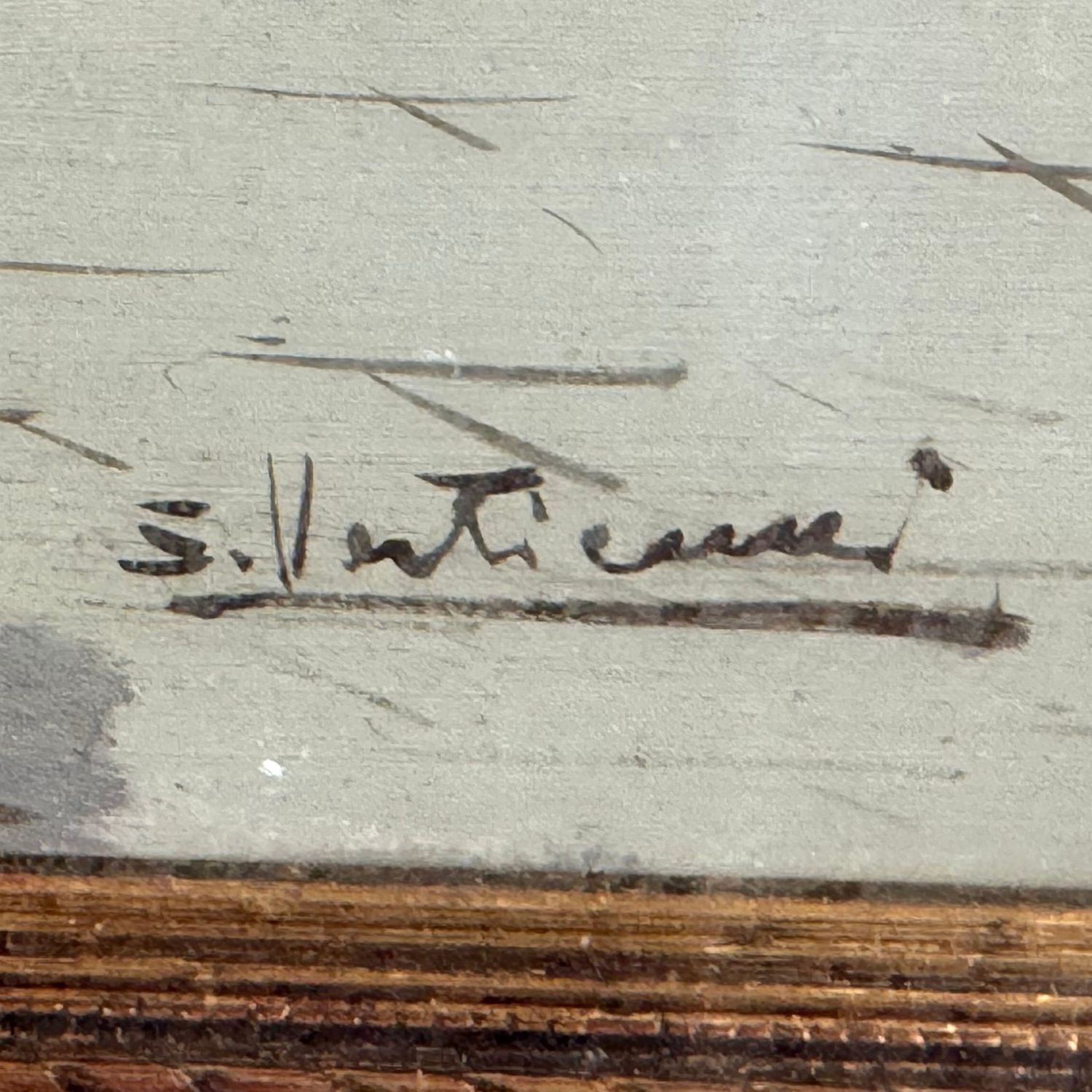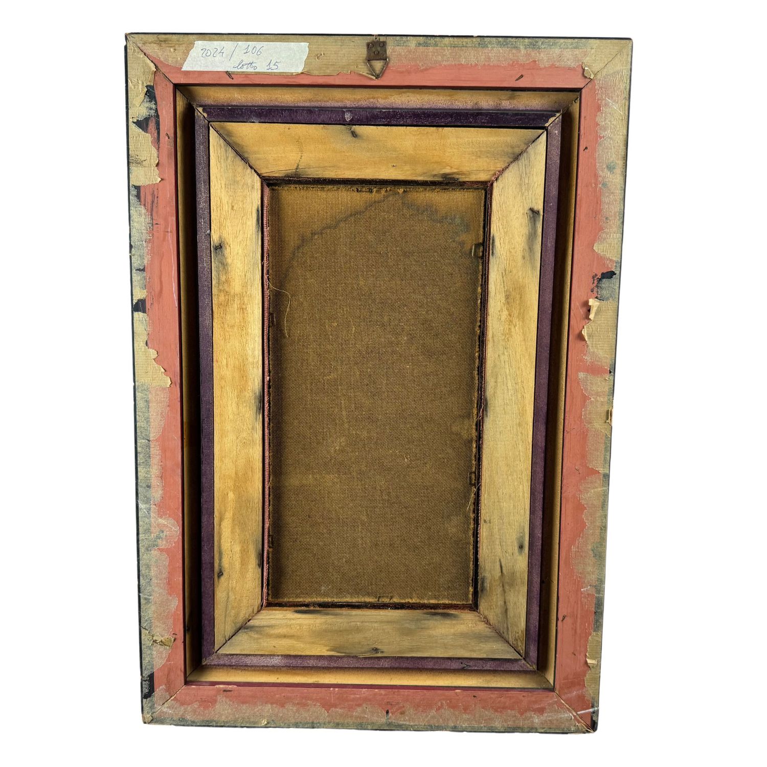 Dipinto olio su pannello, periodo XX secolo scuola Italiana, raffigurante Scorcio di strada napoletana. Dimensioni interno cornice: 20x40 cm. Dimensioni compreso cornice: 66x45 cm. Reca firma in basso a destra da S. Verticelli. Opera in buone condizioni.