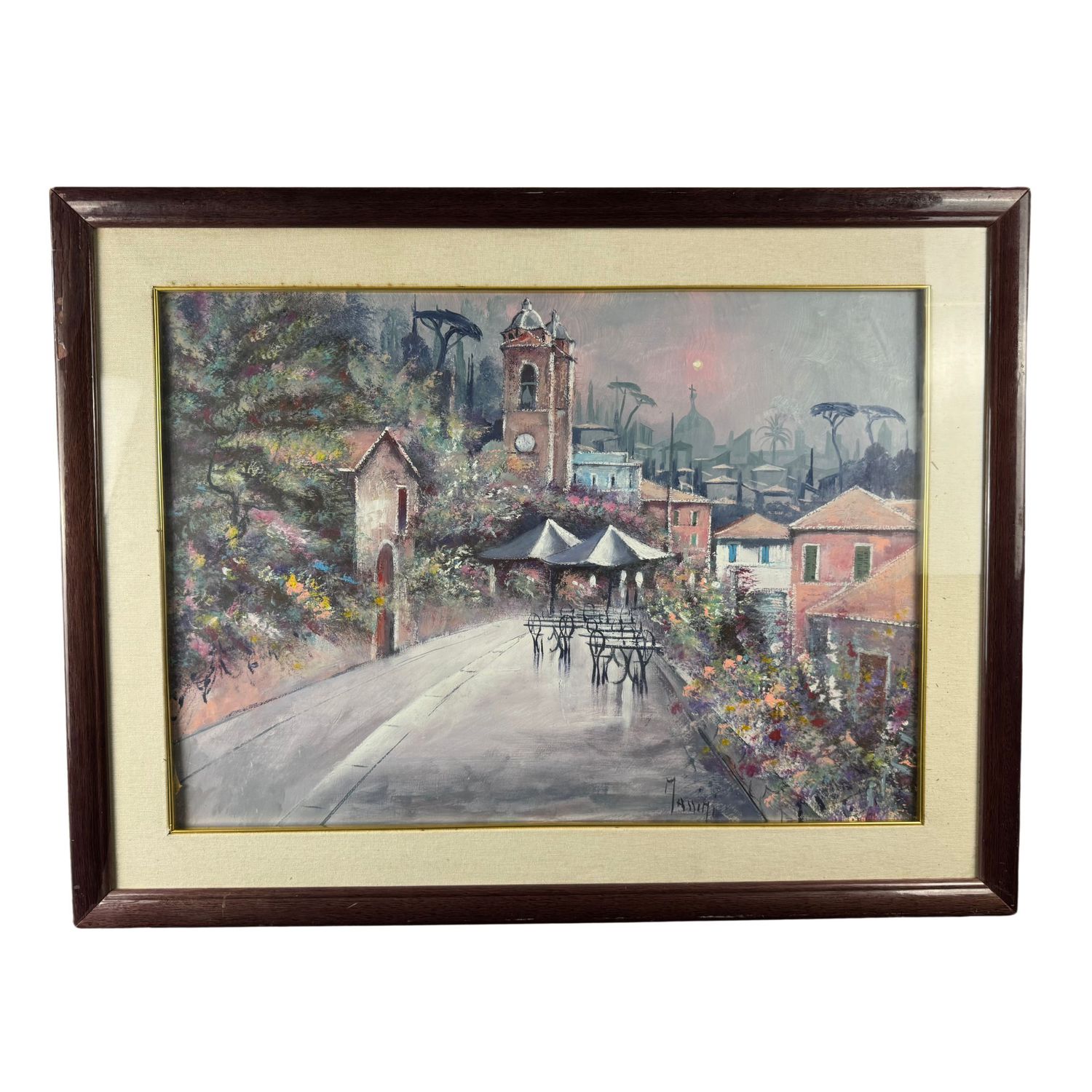 Dipinto olio su tela, periodo XX secolo scuola italiana, raffigurante Paesaggio. Dimensioni interno cornice: 70x50 cm. Dimensioni compreso cornice: 85x65 cm. Reca firma in basso a destra di difficile lettura. Opera in buone condizioni.